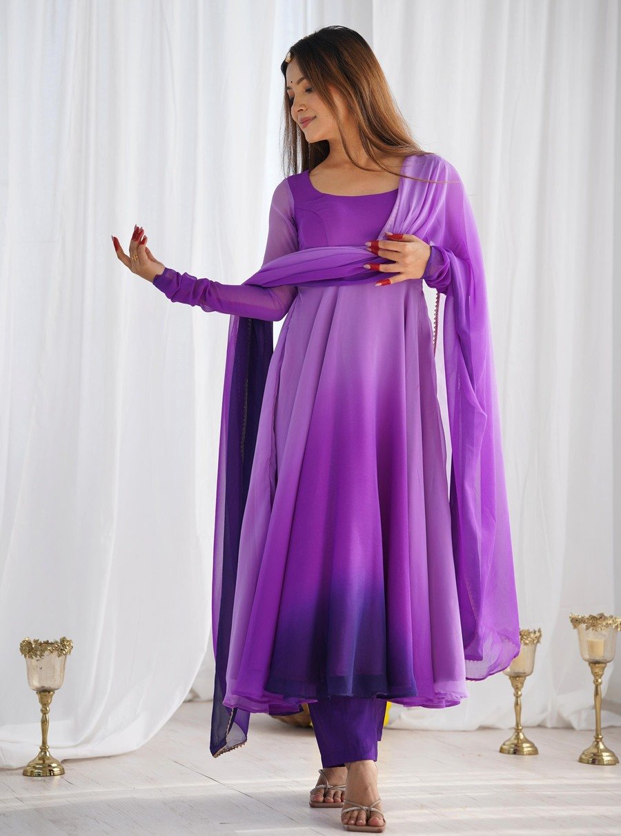 RICH LOOK GEORGETTE COLOURFULL PADDING GOWN BOTTOM WITH DUPATTA PURPLE