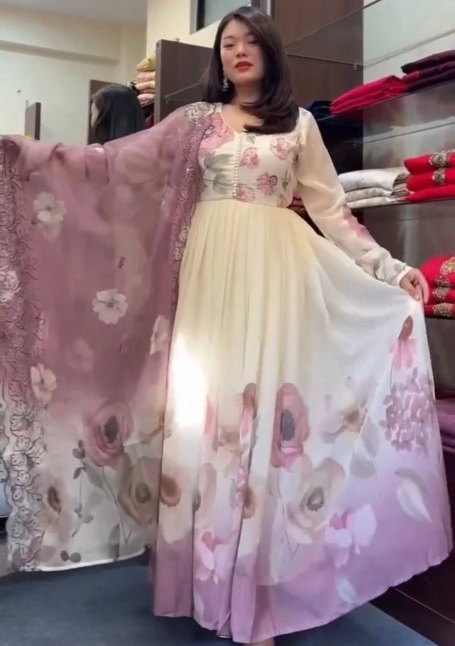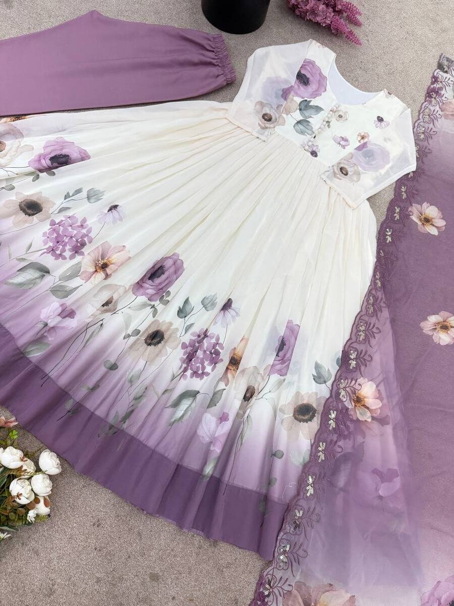 WORK : EMBROIDERY AND FLORAL PRINTED WORK WITH FULL FLAIR