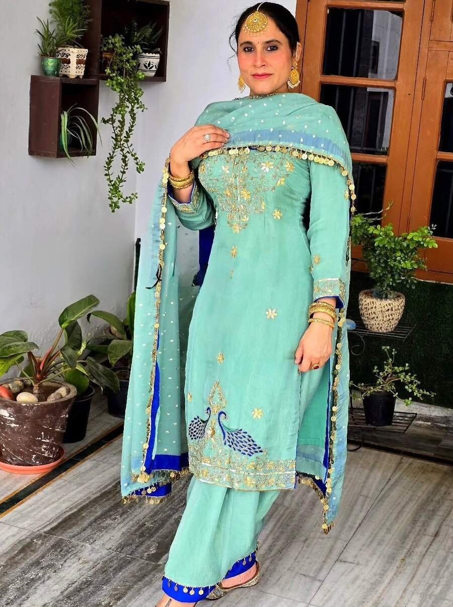 RICH LOOK GEORGETTE EMBROIDERY CODING SEQUENCE WORK TOP PATIYALA WITH DUPATTA SKY