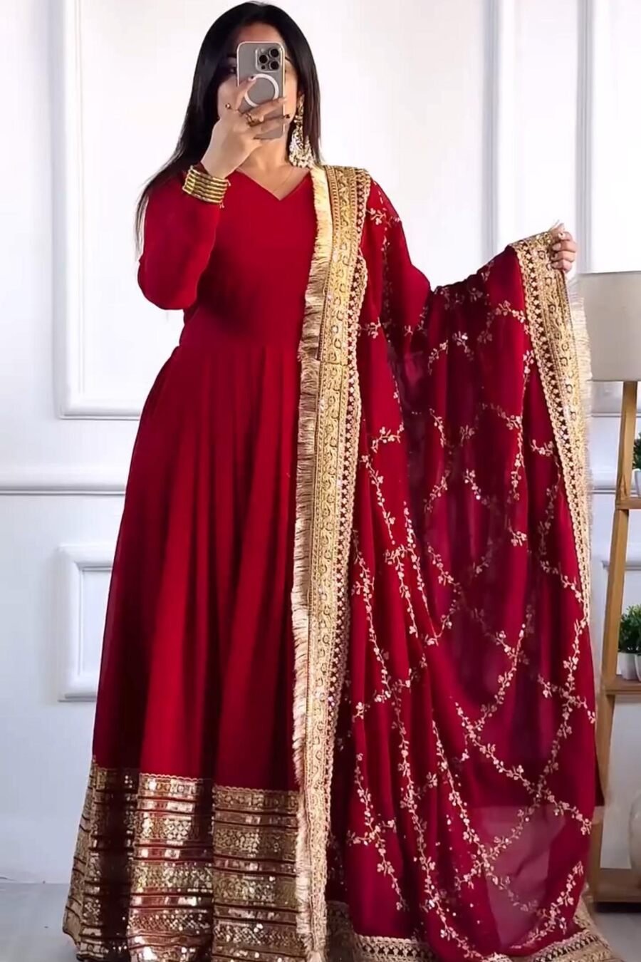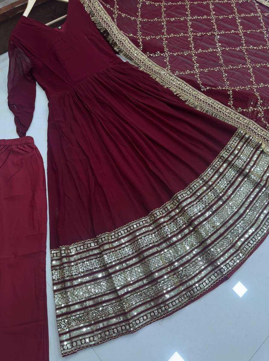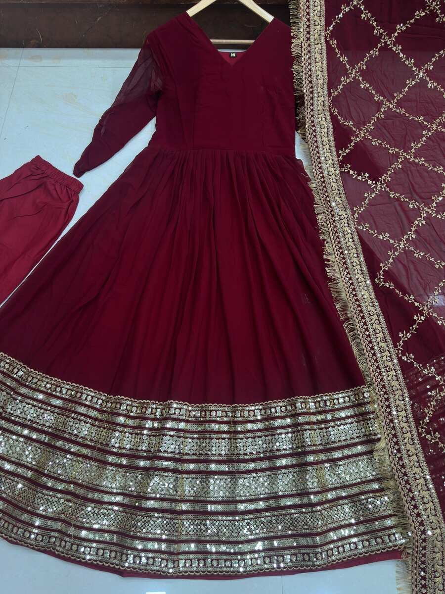 RICH LOOK GEORGETTE EMBROIDERY SEQUENCE DESIGN WORK GOWN BOTTOM WITH DUPATTA MAROON