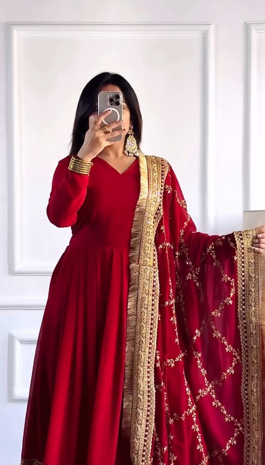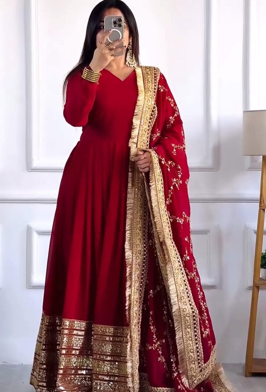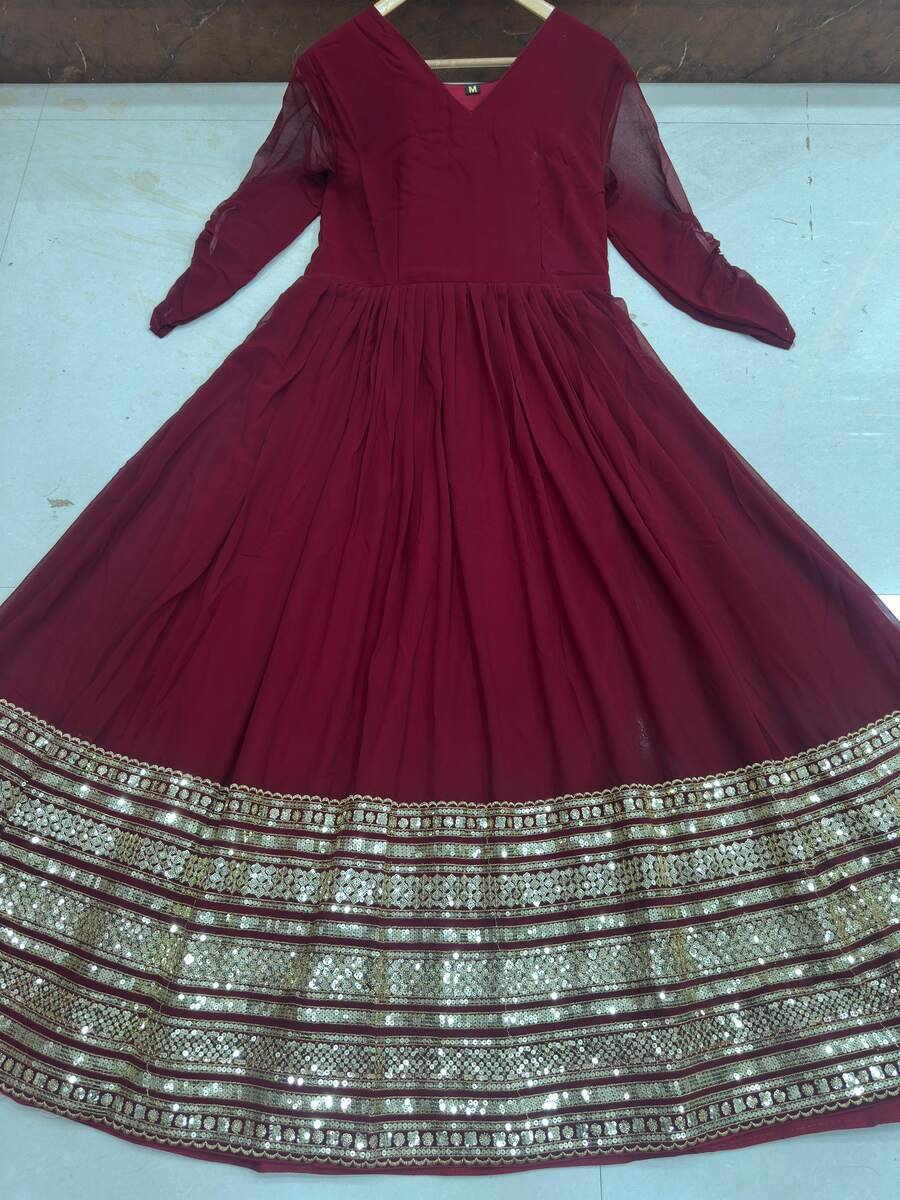RICH LOOK GEORGETTE EMBROIDERY SEQUENCE DESIGN WORK GOWN BOTTOM WITH DUPATTA MAROON