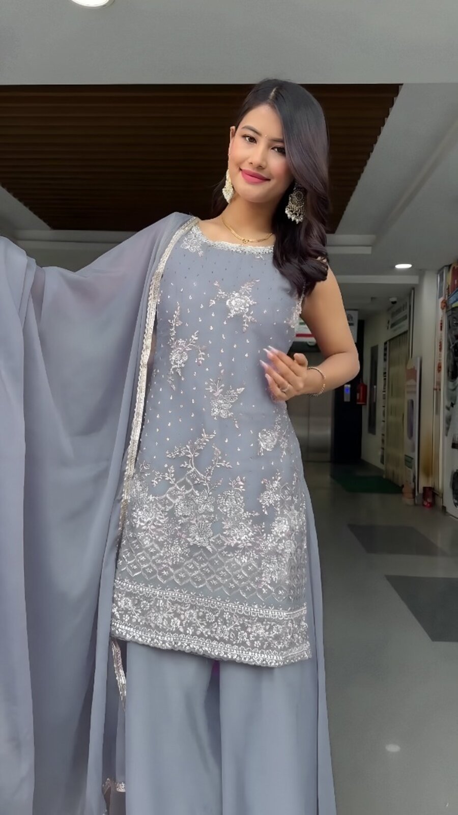 FABRIC : – HEAVY GEORGETTE WITH ELASTIC