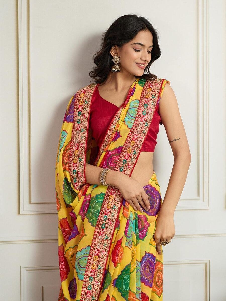 WORK : RAJWADI BANDHEJ PRINT WITH HEAVY EMBROIDERY WORK LACE BORDER