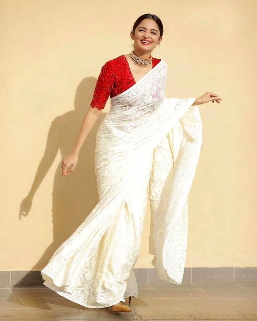 BLOUSE :- BLOMING GEORGETTE SAREE WITH FULL EMBROIDERY