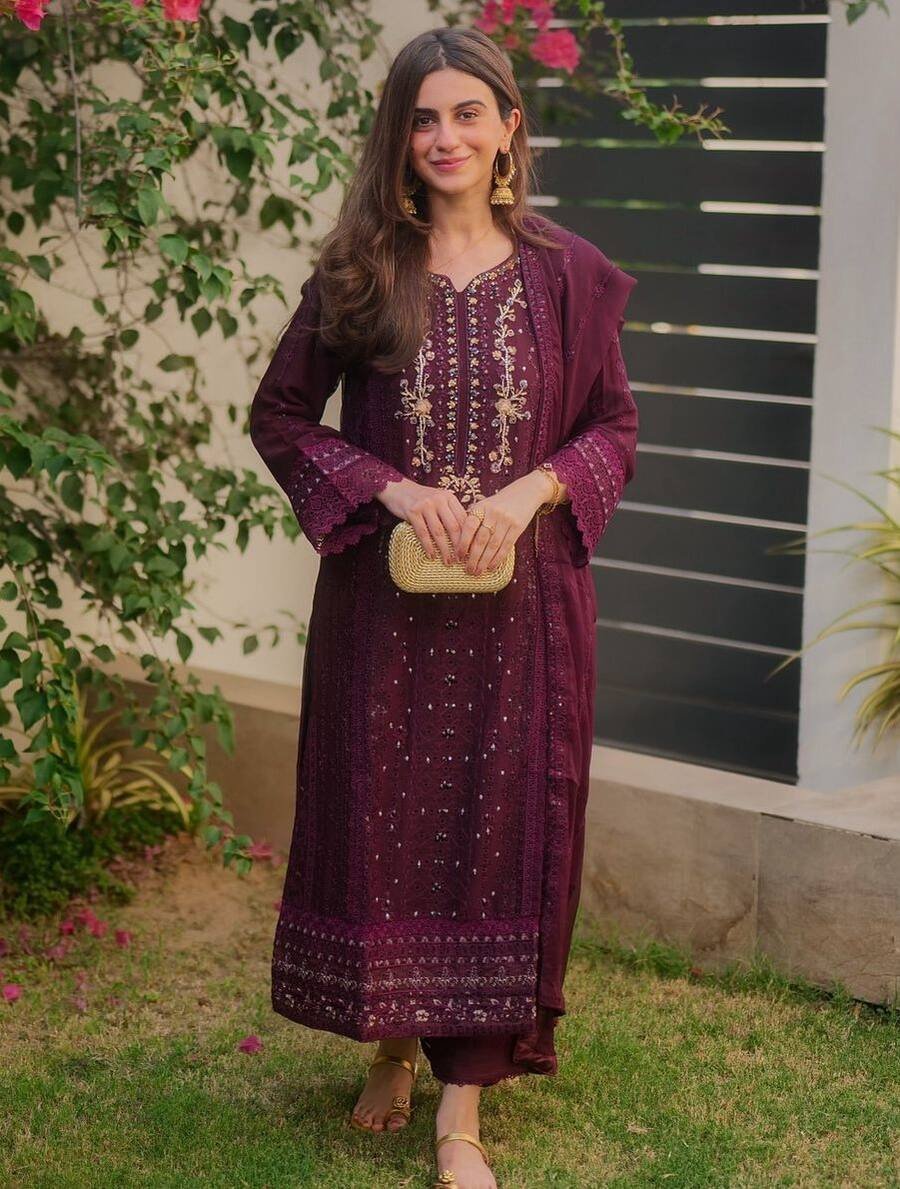 RICH LOOK GEORGETTE SEQUENCE EMBROIDERY WORK TOP BOTTOM WITH DUPATTA WINE