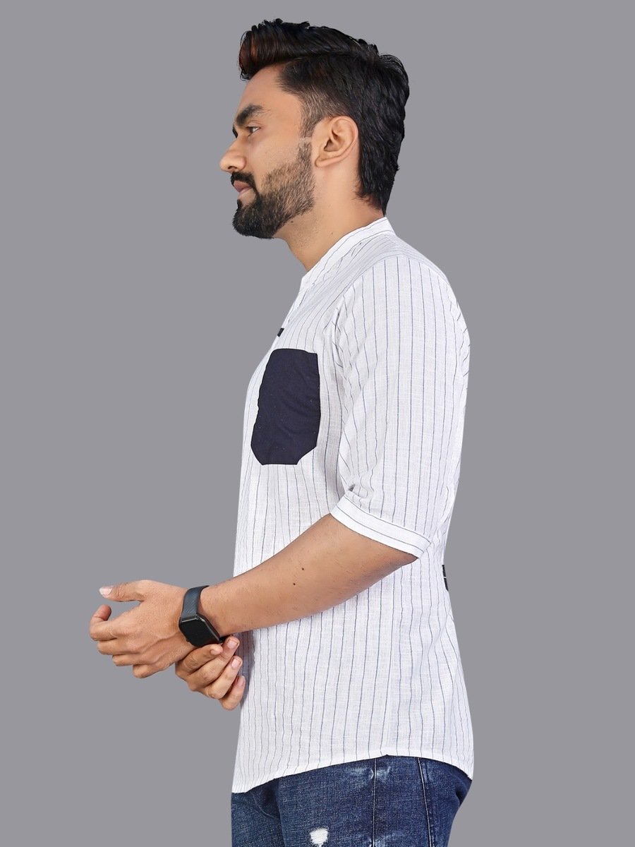 RICH LOOK LINEN HAND-WOVEN DESIGNS MEN’S SHORT KURTA WHITE