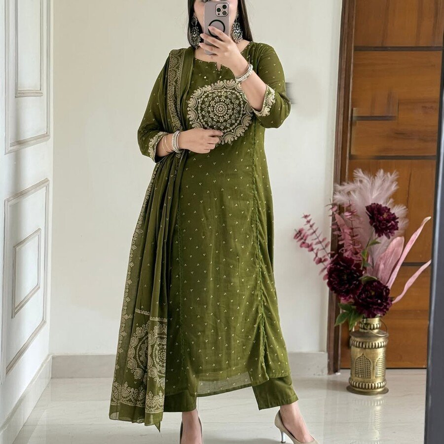 WORK : FLORAL EMBROIDERY AND MATCHING PRINTED