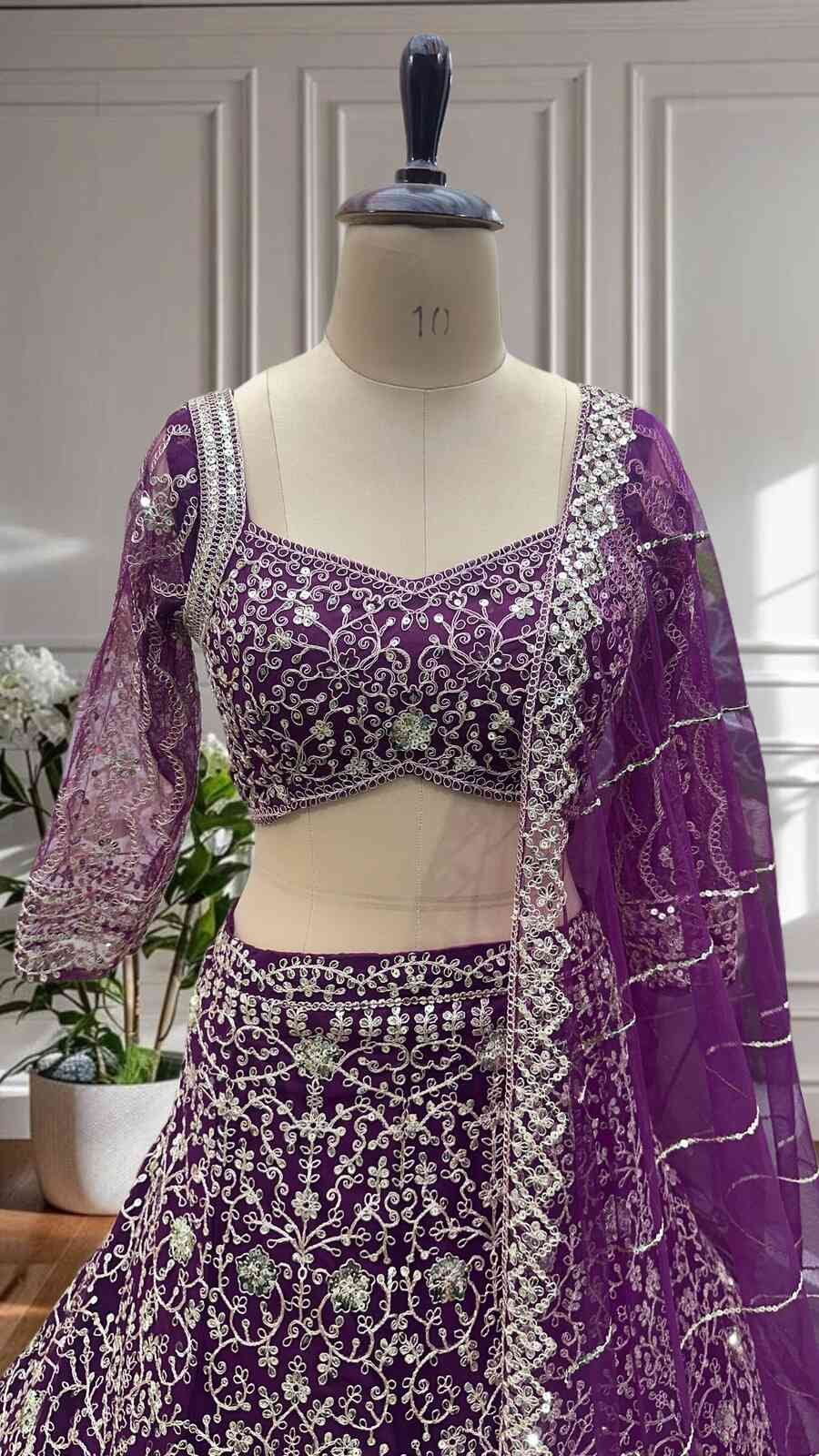 RICH LOOK NET EMBROIDERY SEQUENCE CODING WORK LEHENGA CHOLI WITH DUPATTA PURPLE