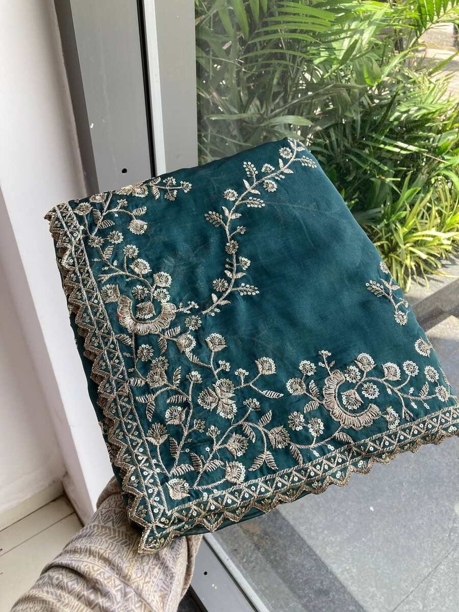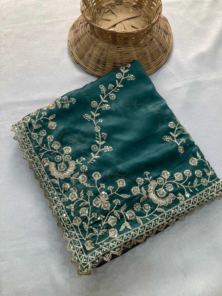 RICH LOOK RANGOLI SILK EMBROIDERY CUTWORK WORK LACE BORDER WORK SAREE WITH UNSTITCHED BLOUSE TEAL