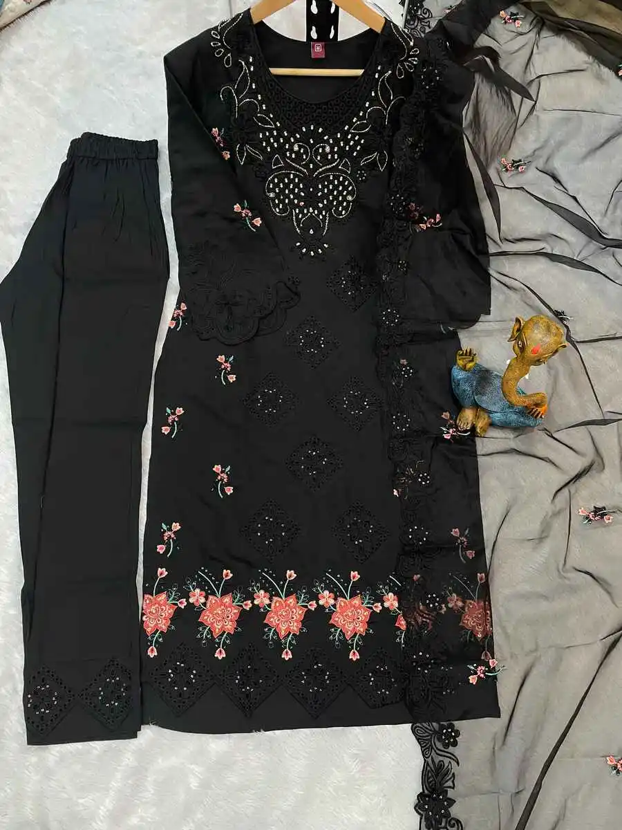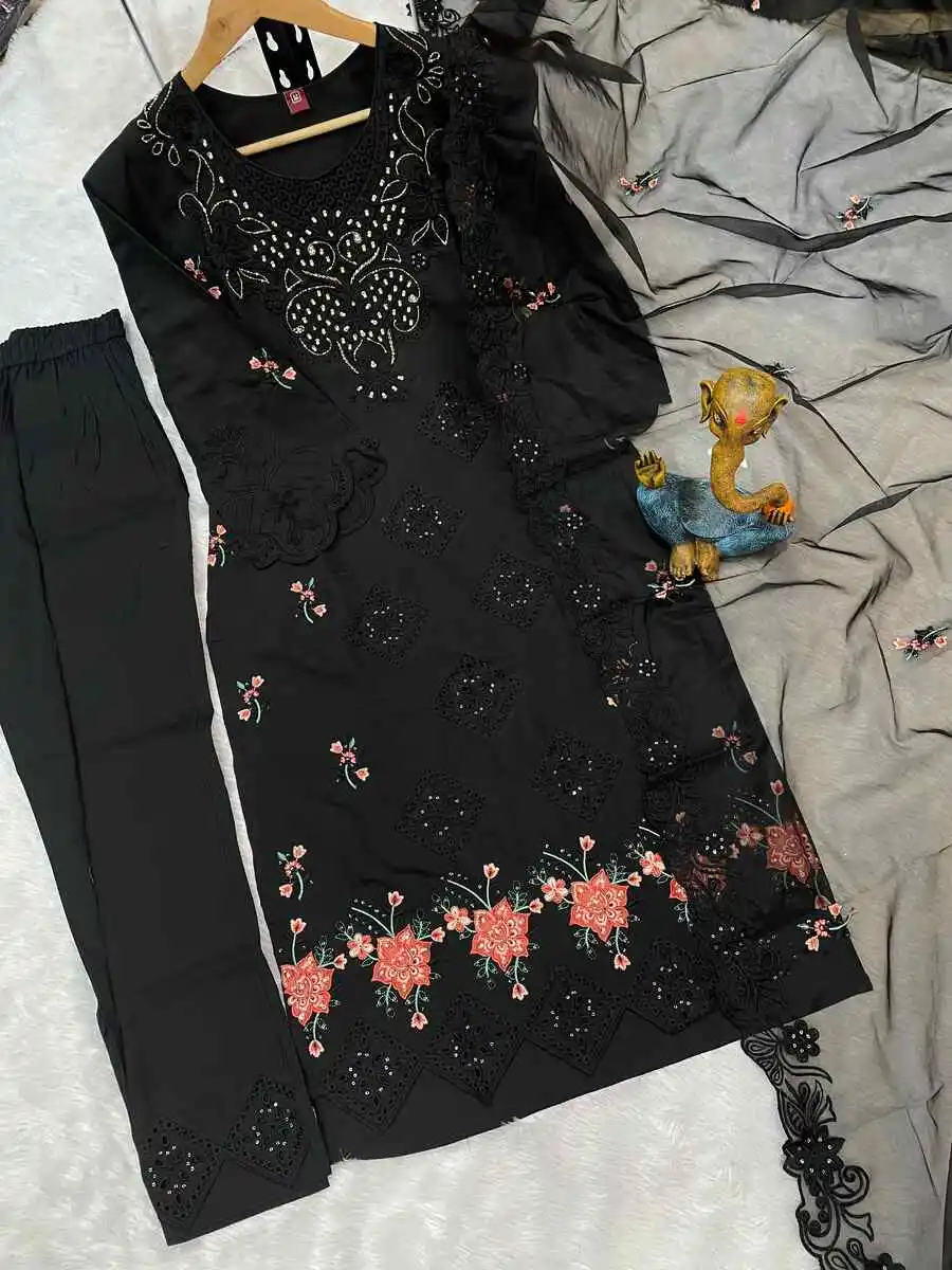 RICH LOOK ROMAN BORING EMBROIDERY WITH SEQUENCE & HEAVY HAND WORK TOP BOTTOM WITH DUPATTA BLACK