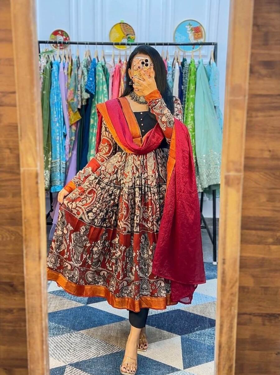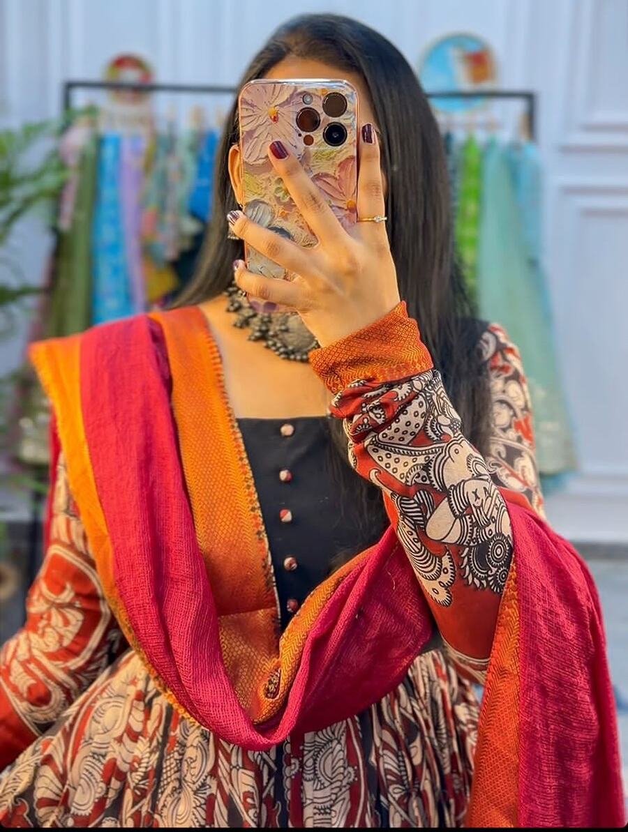 WORK :- KALAMKARI PRINT WITH FULL FLAIR