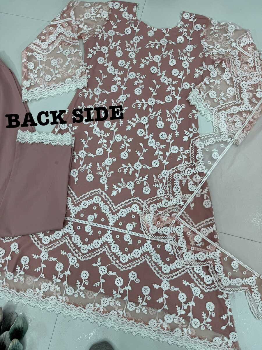 RICH LOOK SOFT NET EMBROIDERY GPU LACE WORK TOP BOTTOM WITH DUPATTA PINK