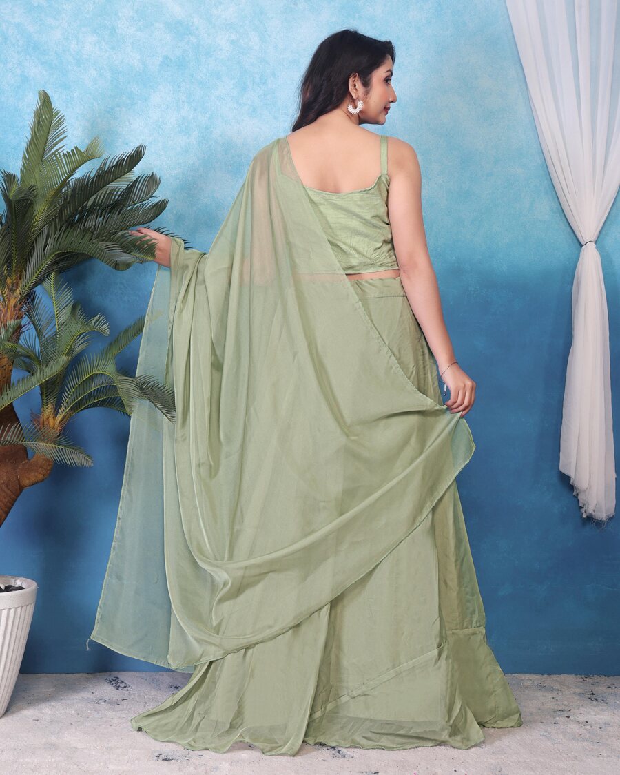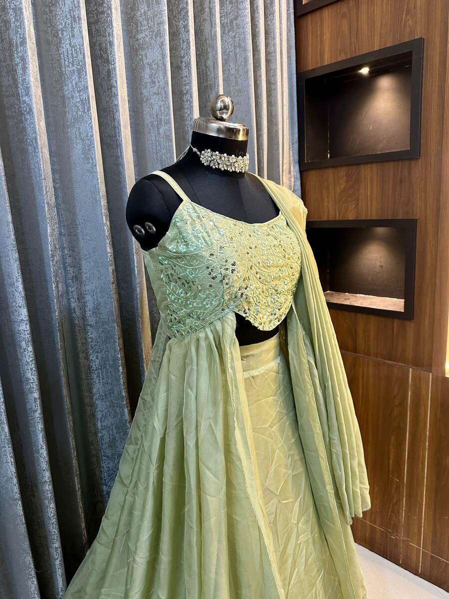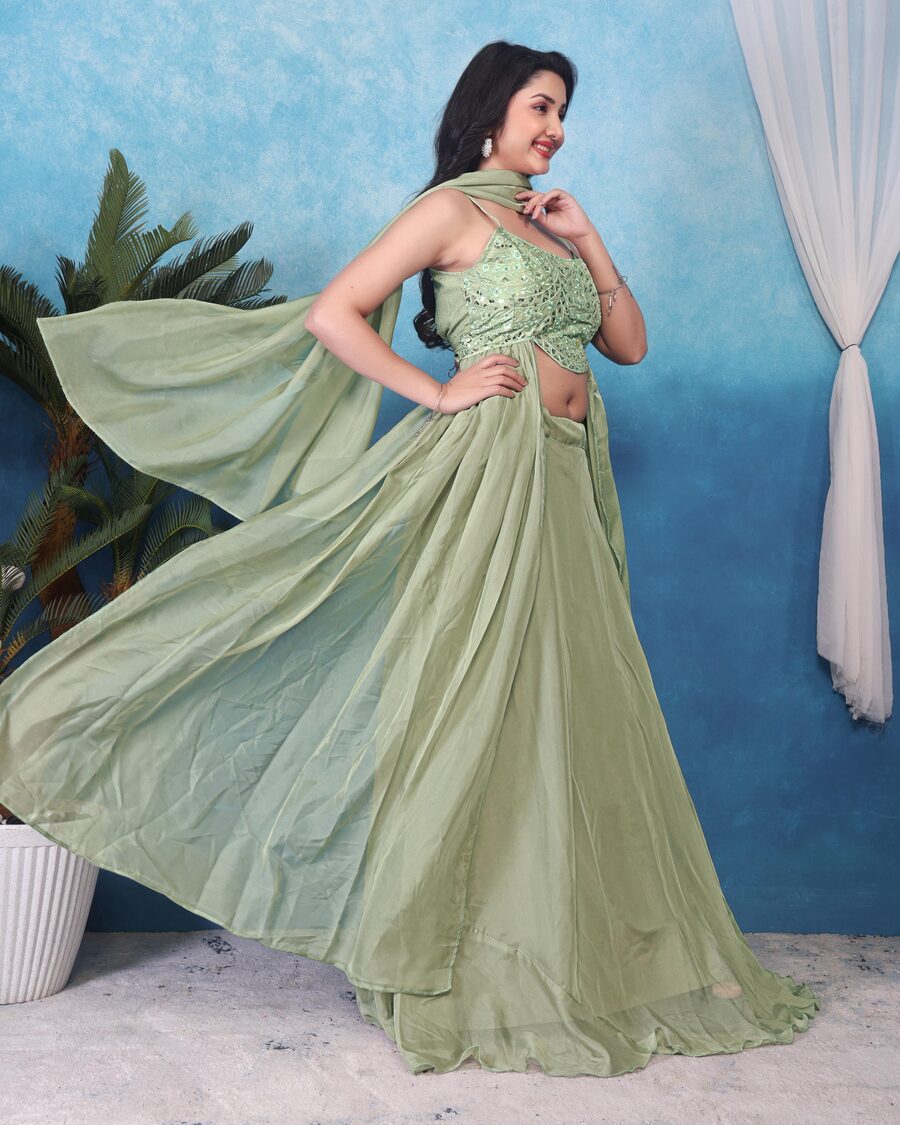 RICH LOOK TABBY SILK PLAIN LEHENGA WITH EMBROIDERY SEQUENCE WORK BLOUSE AND DUPATTA MINT
