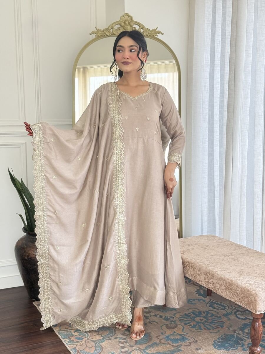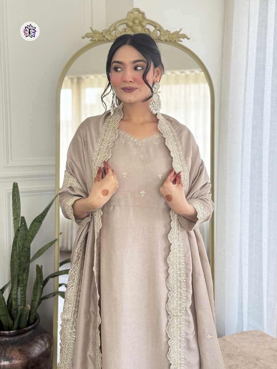 RICH LOOK VICHITRA EMBROIDERY WORK TOP BOTTOM WITH DUPATTA CREAM