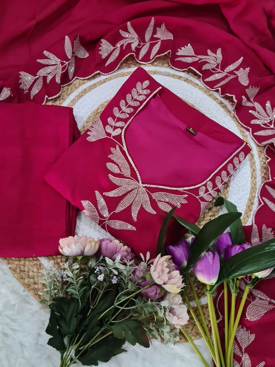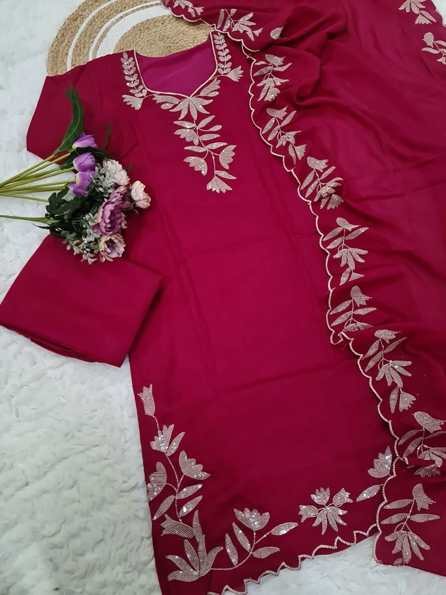 RICH LOOK VICHITRA SILK SEQUENCE EMBROIDERY WORK TOP BOTTOM WITH DUPATTA RANI