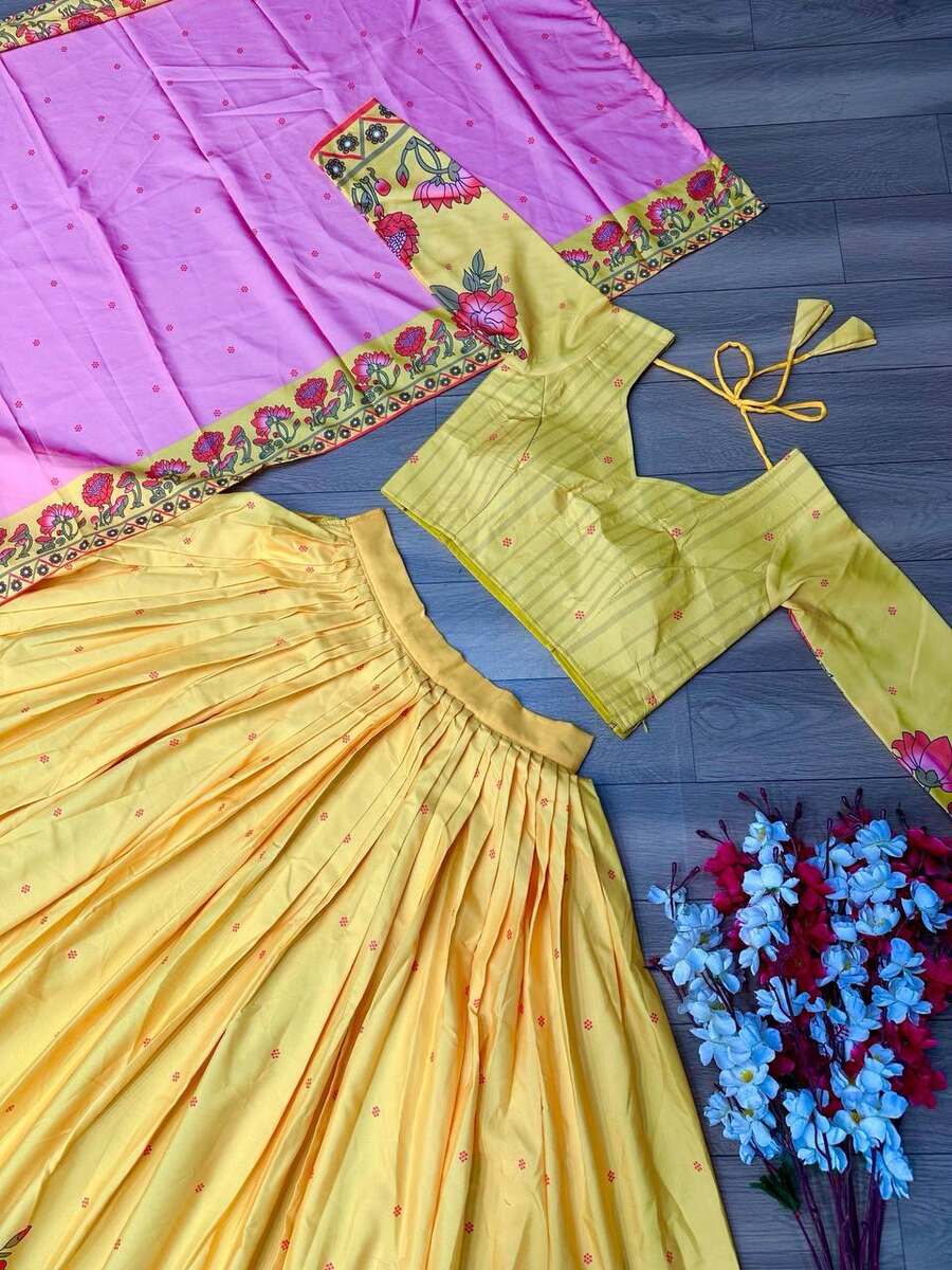 TRADITIONAL CREPE SILK KALAMKARI PRINTED LEHENGA CHOLI WITH DUPATTA YELLOW