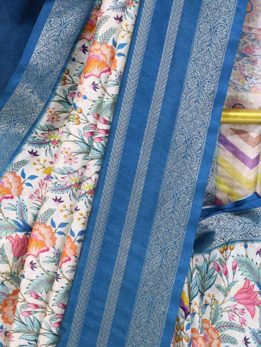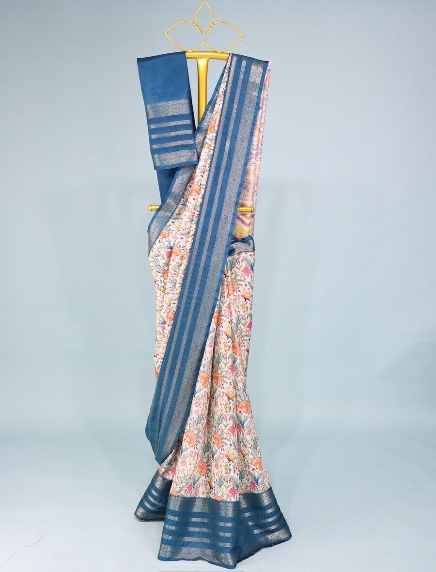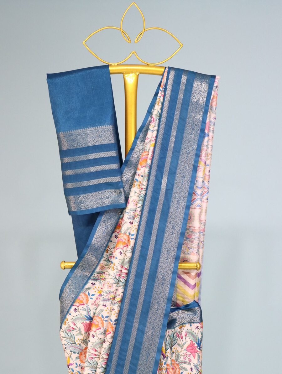 TRADITIONAL DOLA SILK PRINTED WEAVING WORK SAREE WITH UNSTITCHED BLOUSE BLUE