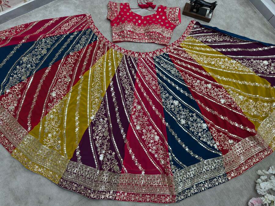TRADITIONAL GEORGETTE SEQUENCE EMBROIDERY WORK LEHENGA CHOLI WITH DUPATTA MULTI