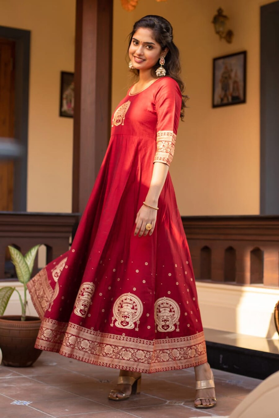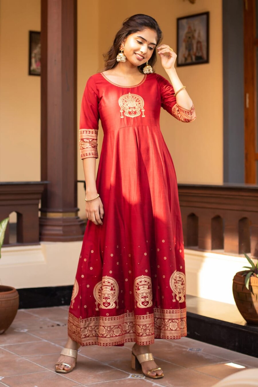 GOWN FABRIC :- SILK WITH HALF INNER WITH EMBROIDERY WORK AND FOIL PRINT TRADITIONAL GOWN