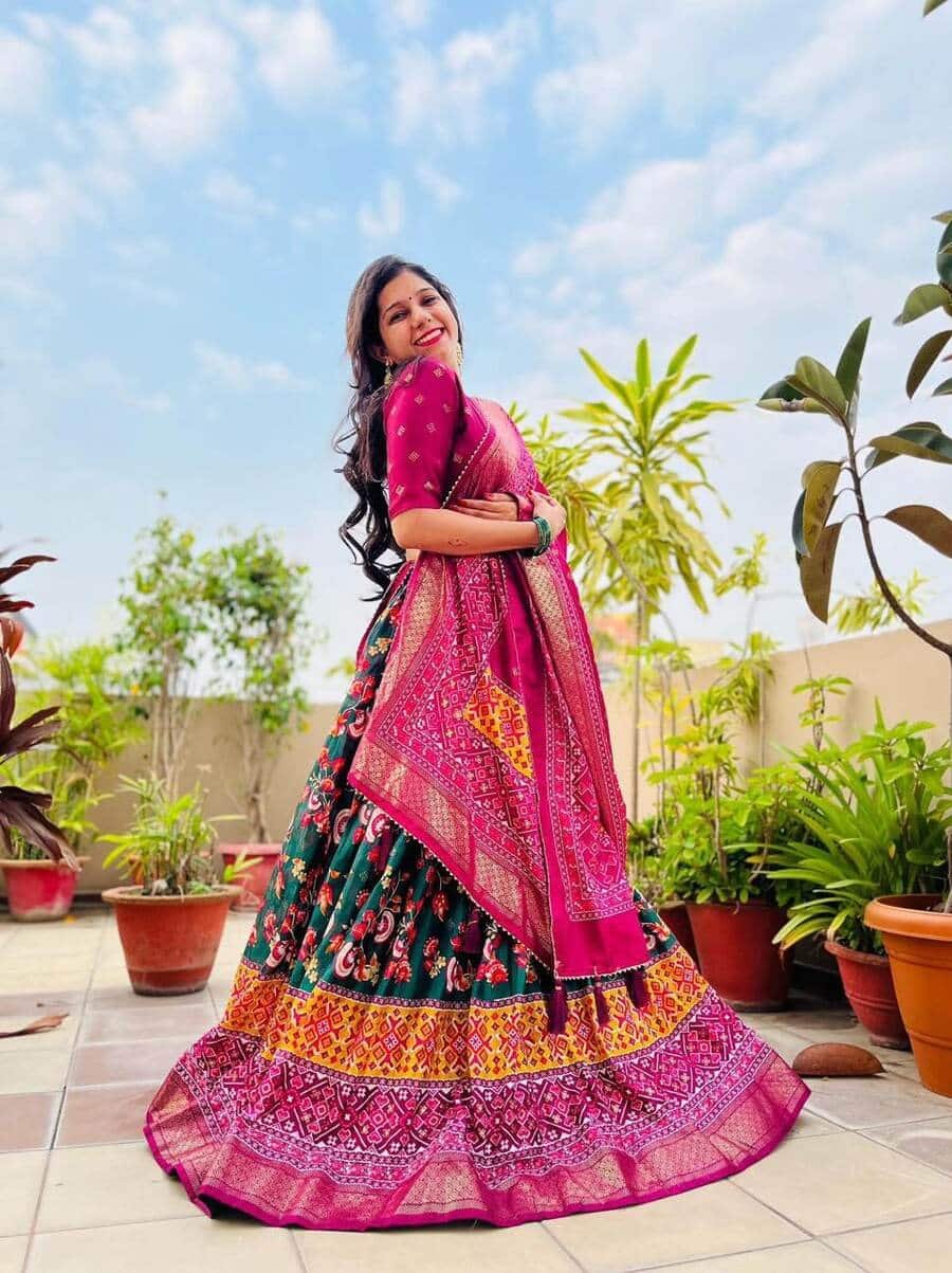 LEHENGA WORK : FULLY PRINTED WITH CONTRAST FOIL WORK BORDER
