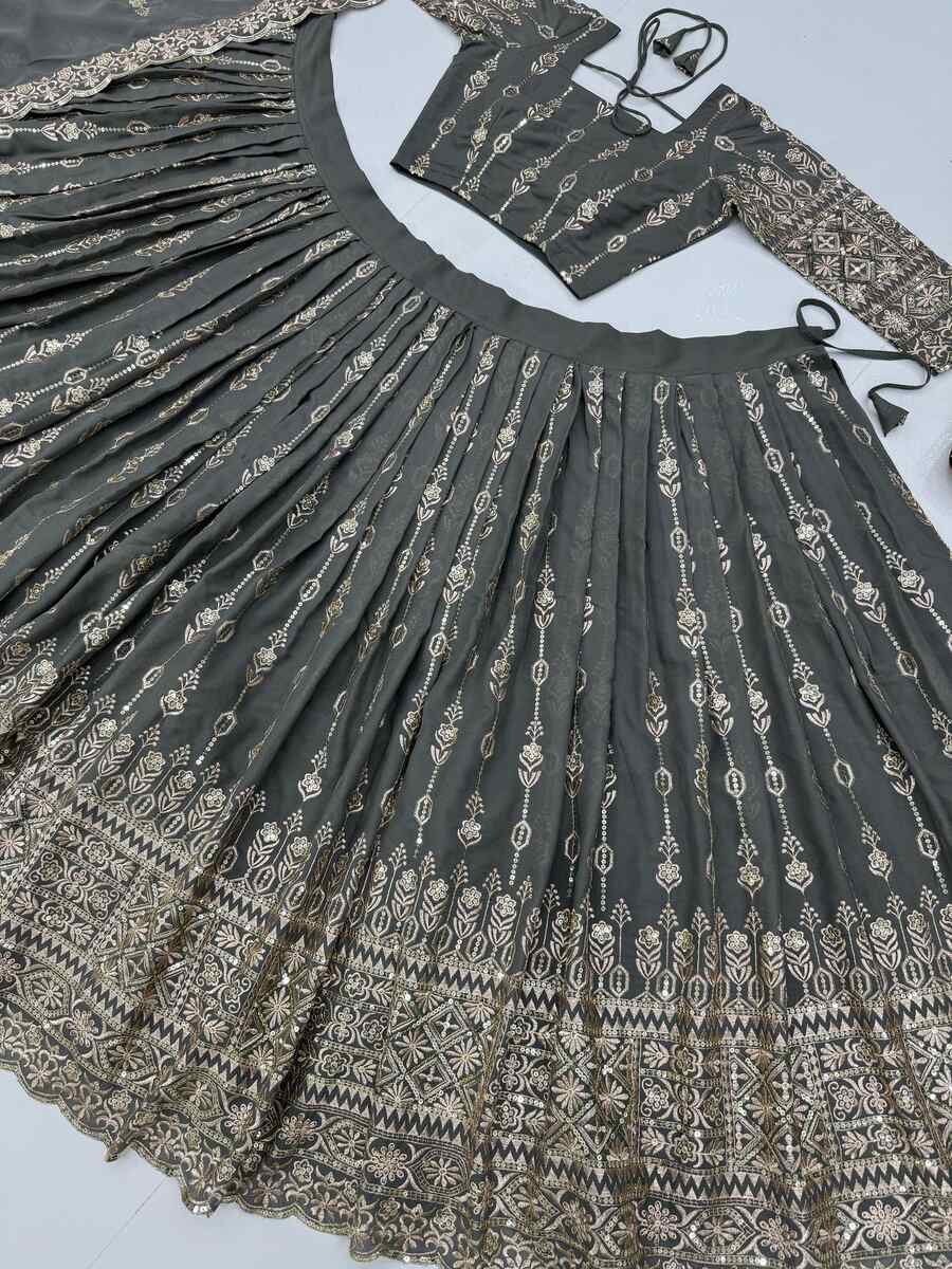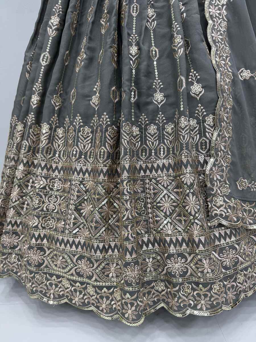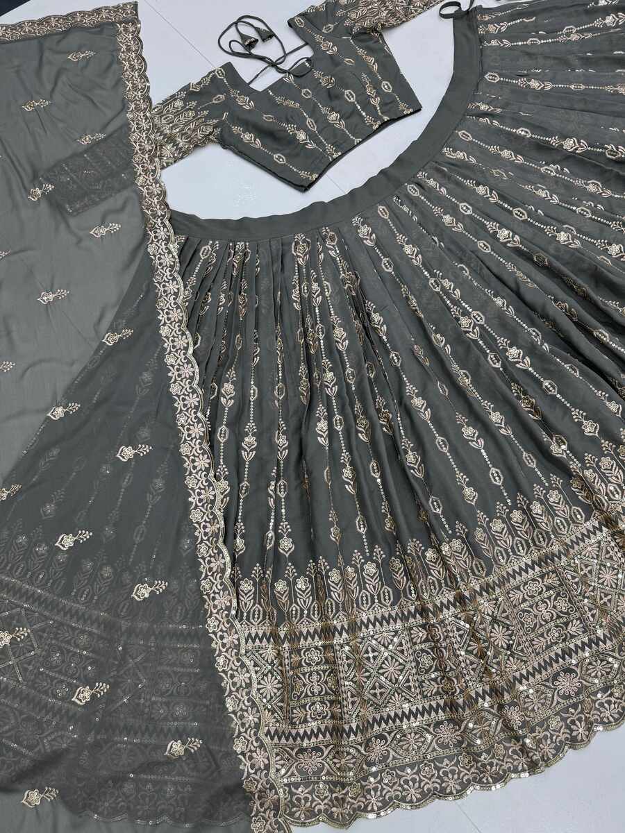 TRADITIONAL STAR GEORGETTE EMBROIDERY SEQUENCE WORK LEHENGA CHOLI WITH DUPATTA GREY
