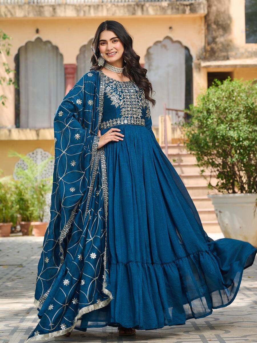TRADITIONAL VICHITRA SILK SEQUENCE EMBROIDERY WORK GOWN WITH DUPATTA RAMA