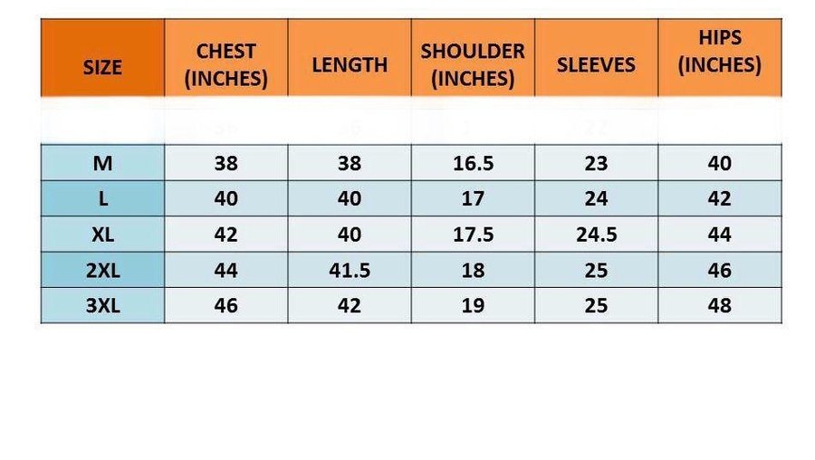 SIZE :- M(38),L(40),XL(42) XXL(44),3XL(46)