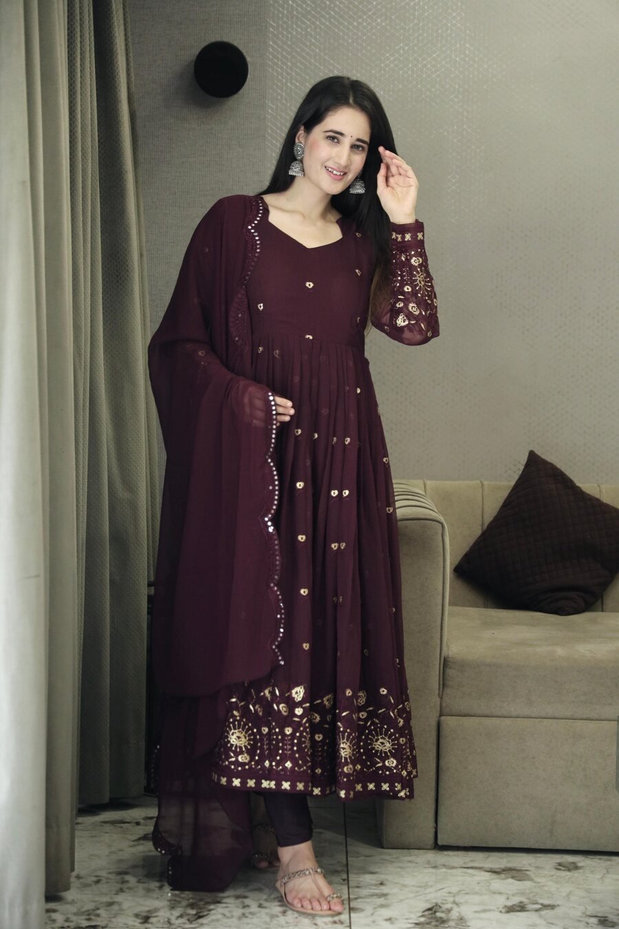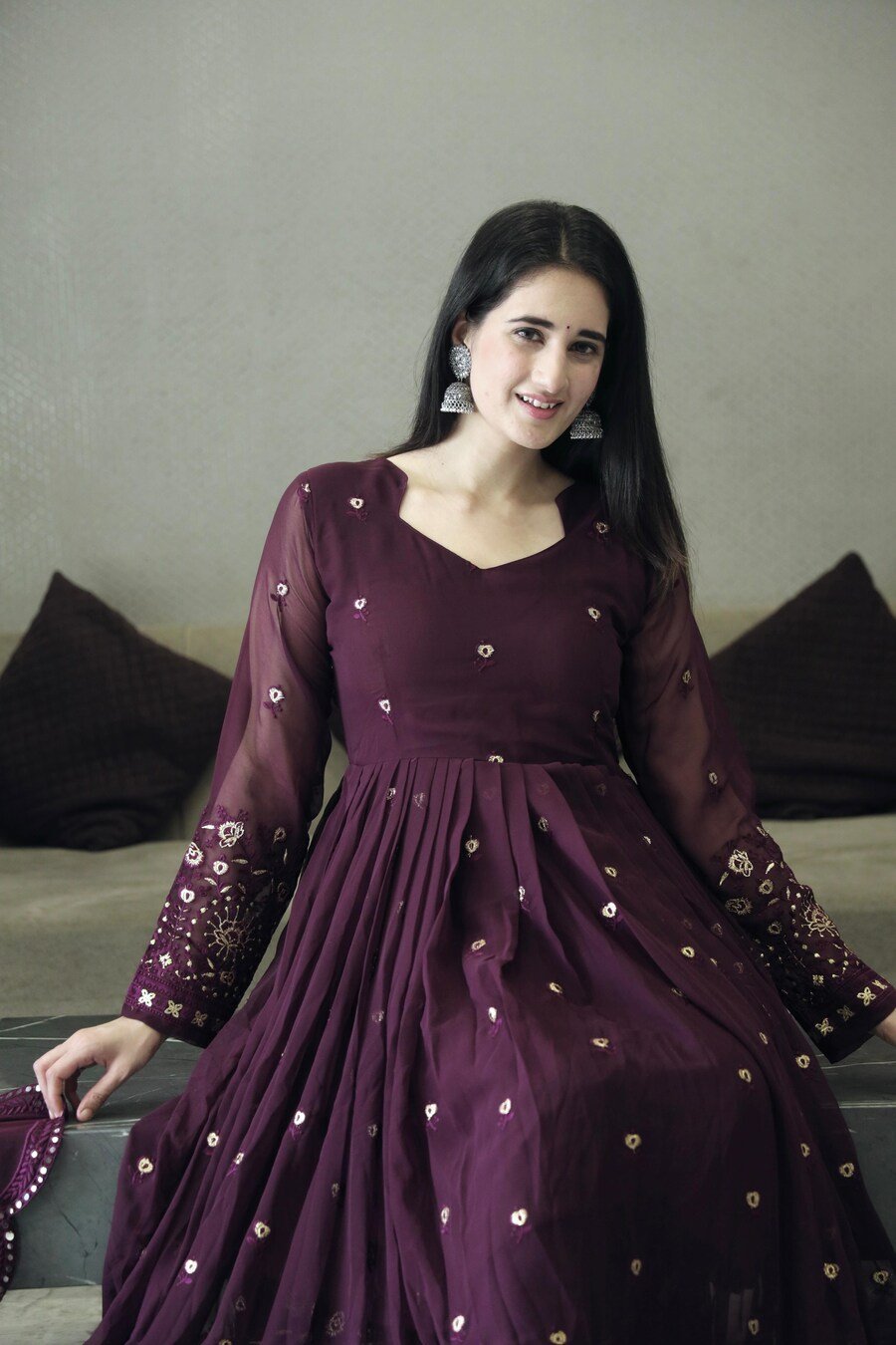 FABRIC :- FAUX GEORGETTE WITH ALL OVER EMBROIDERY WORK