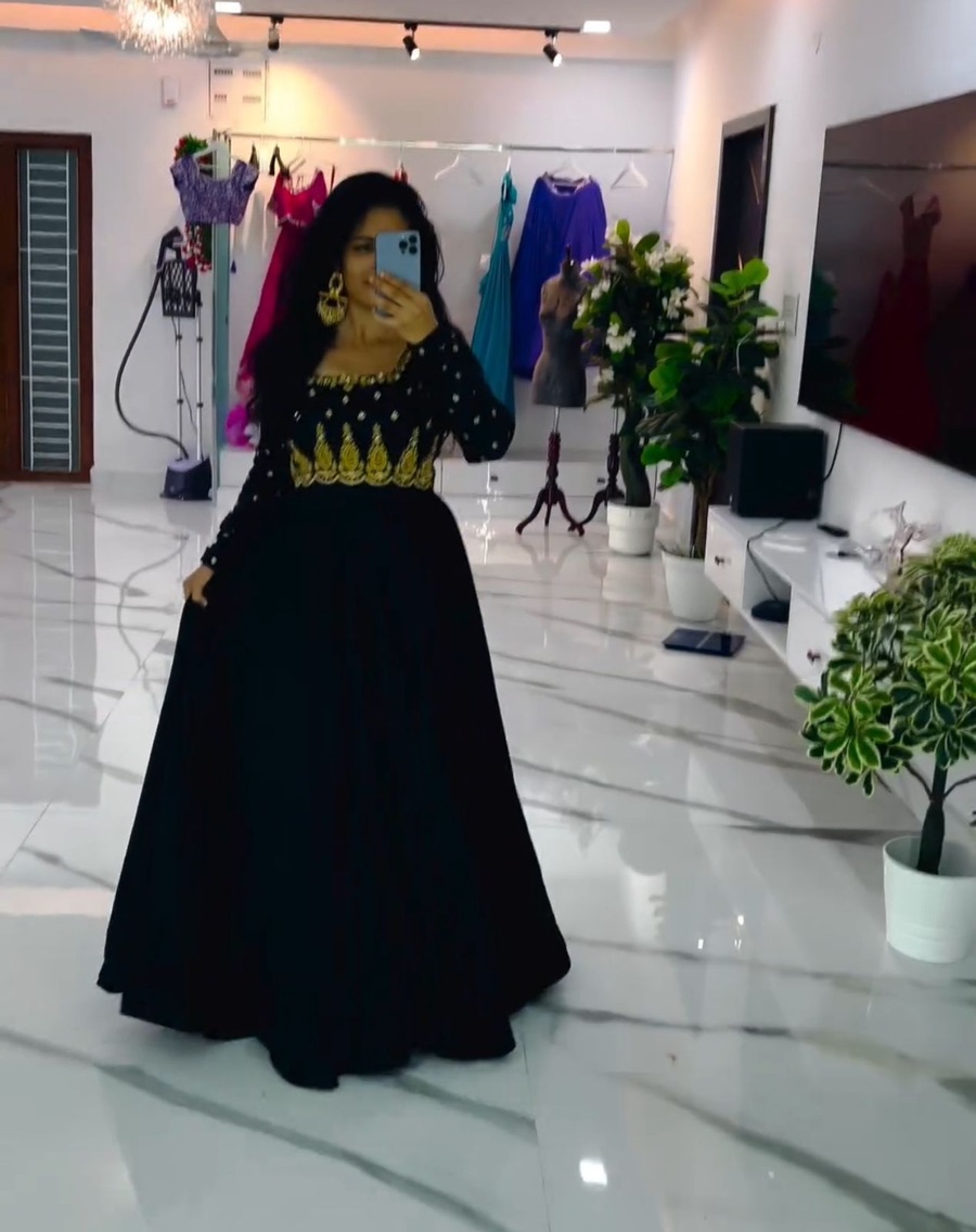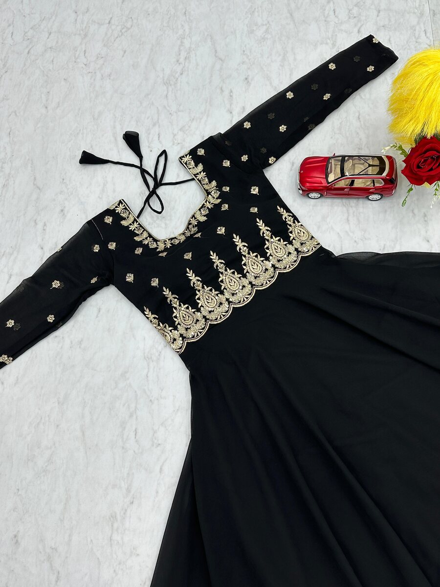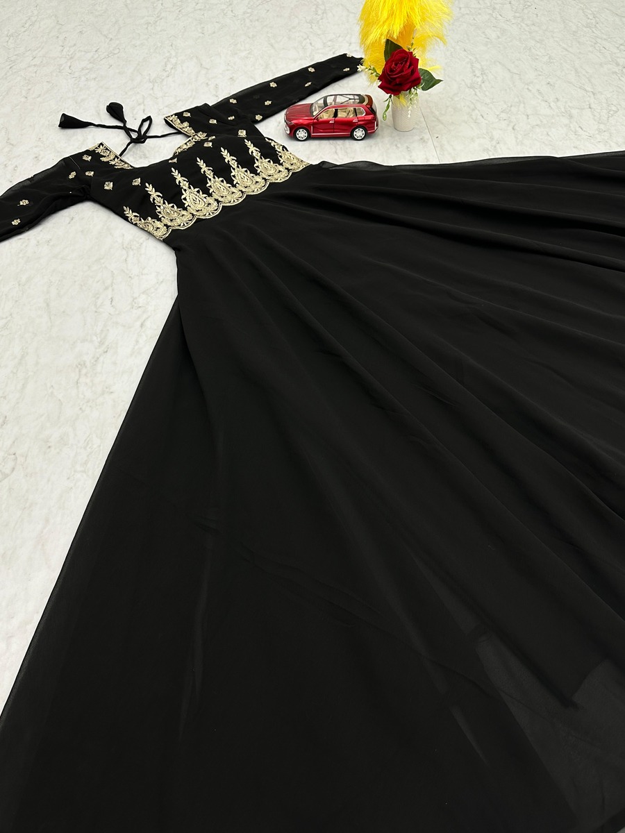 TREANDING GEORGETTE EMBROIDERY WORK READY TO WEAR GOWN BLACK
