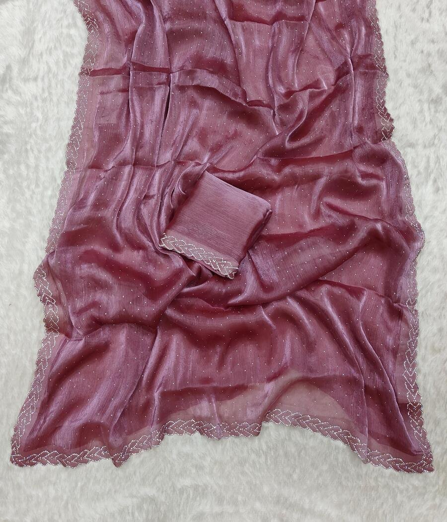BLOUSE FABRIC :- RUNNING BARBARI WITH ZARKHAN WORK BORDER (UNSTITCHED)