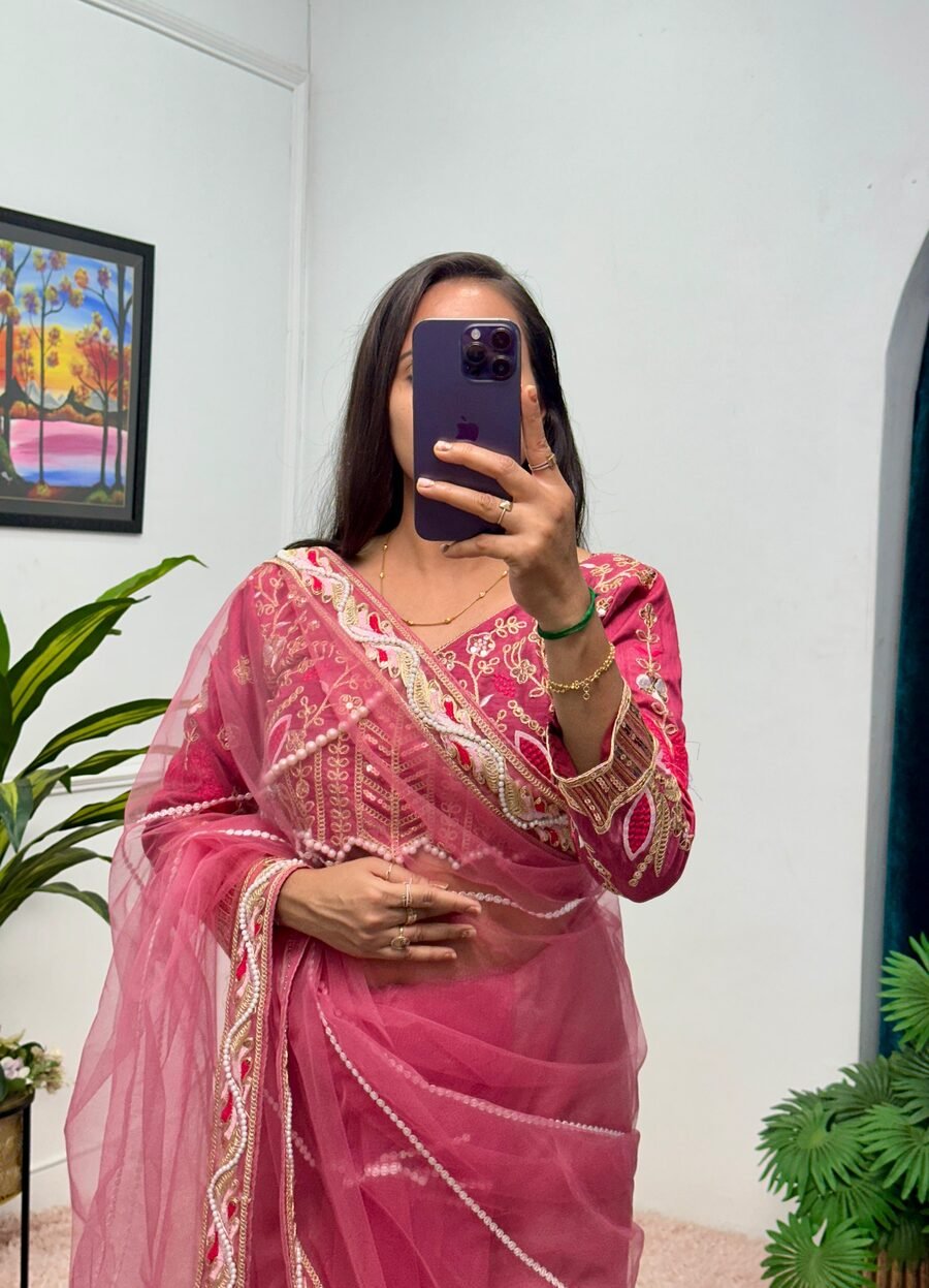 WORK :- EMBROIDERY WORK ON FRONT & BACK SIDE WITH MOTI WORK