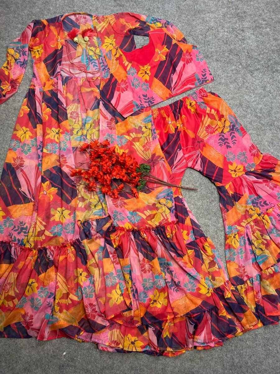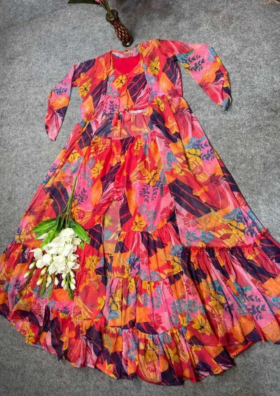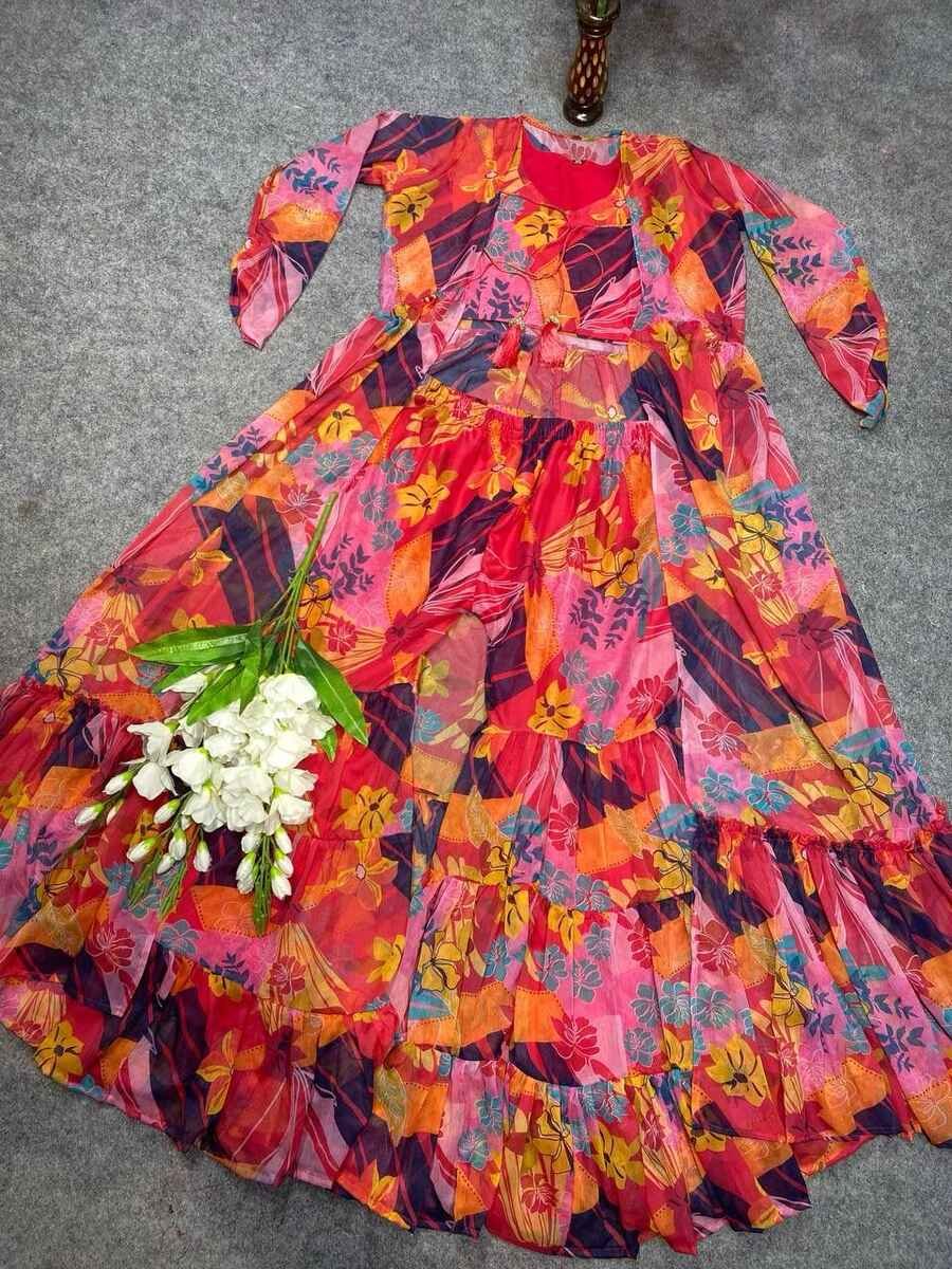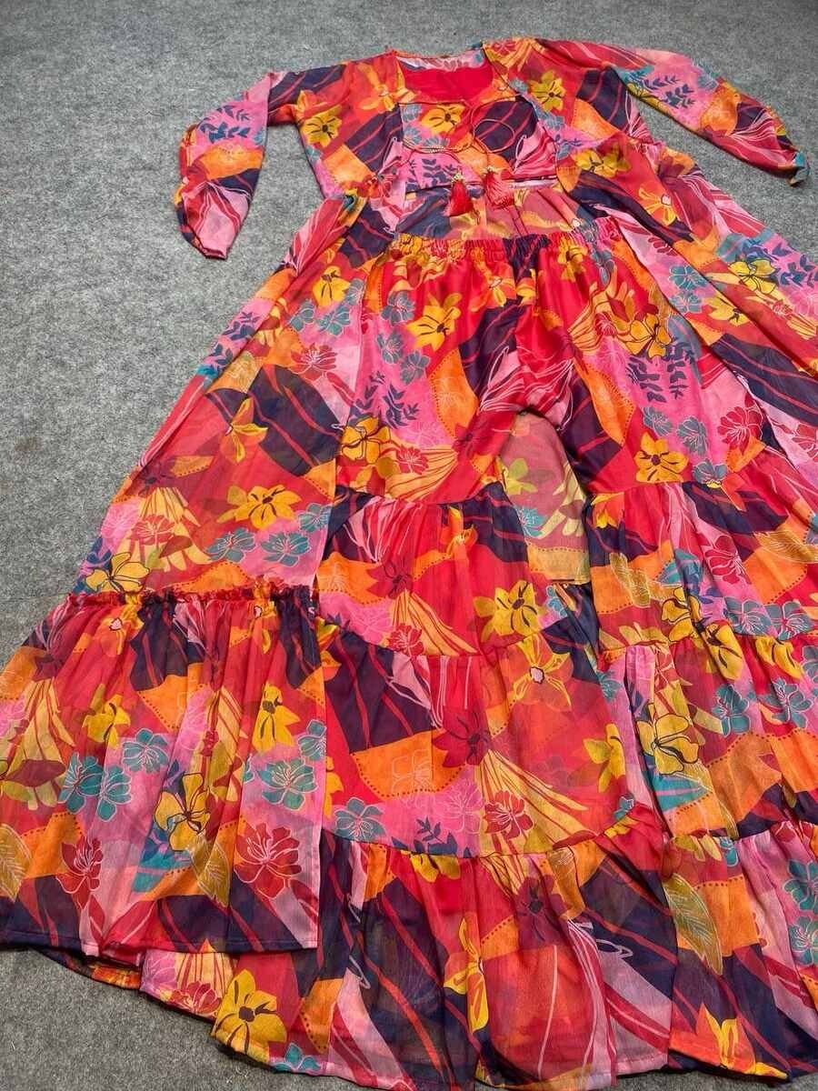 SHRUG FABRIC :- CHIFFON DIGITAL PRINTS WITH FULL SLEEVES
