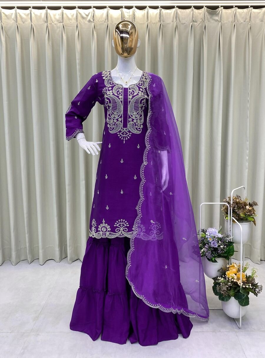 FABRIC :- ORGANZA WITH SEQUENCE EMBROIDERY WORK