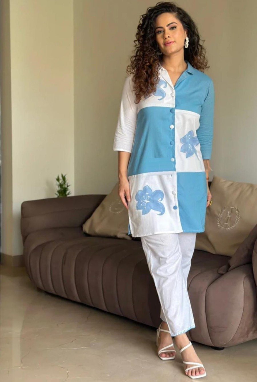 WORK :- PRINTED WITH FANCY BUTTON WORK
