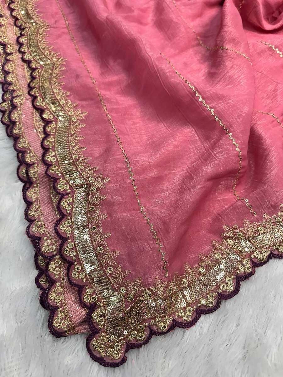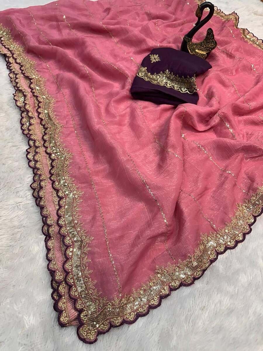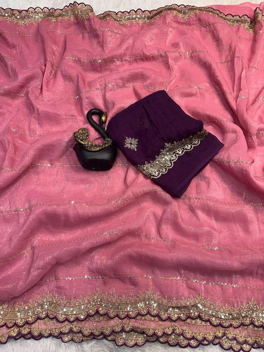 TRENDING CRUNCHY CRUSH EMBROIDERY SEQUENCE ZARI WORK SAREE WITH UNSTITCHED BLOUSE GAJRI