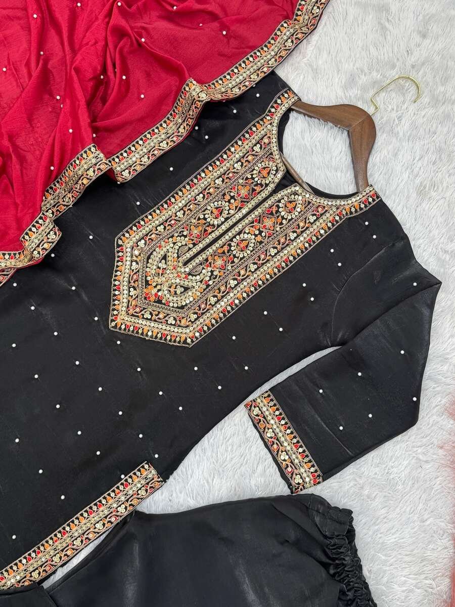 WORK : FANCY EMBROIDERY CODING DORI-SEQUENCE WORKED WITH FULL SLEEVE AND RIVETED MOTI WORK