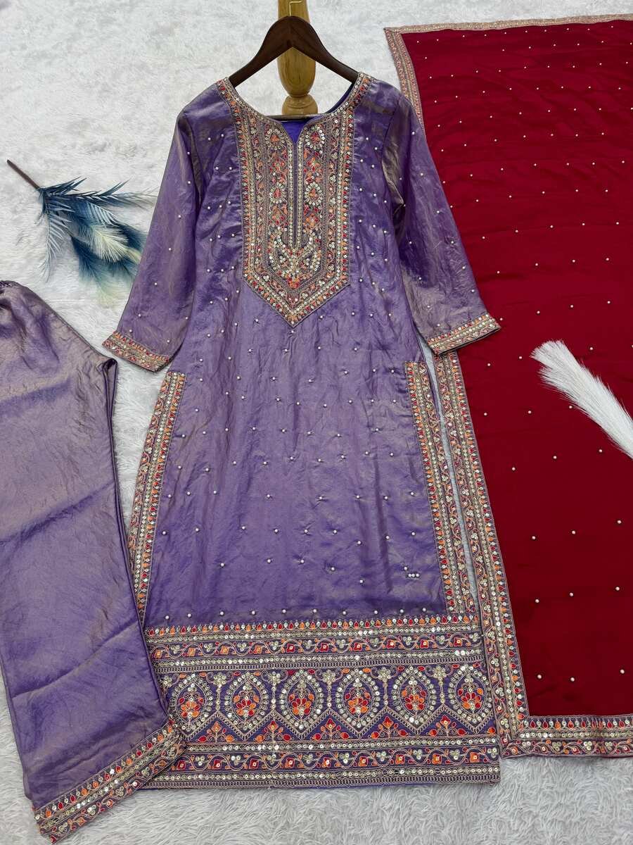 FABRIC : HEAVY CHINON SILK WITH EMBROIDERY CODING DORI-SEQUENCE WORK WITH LACE BORDER AND RIVET MOTI WORK
