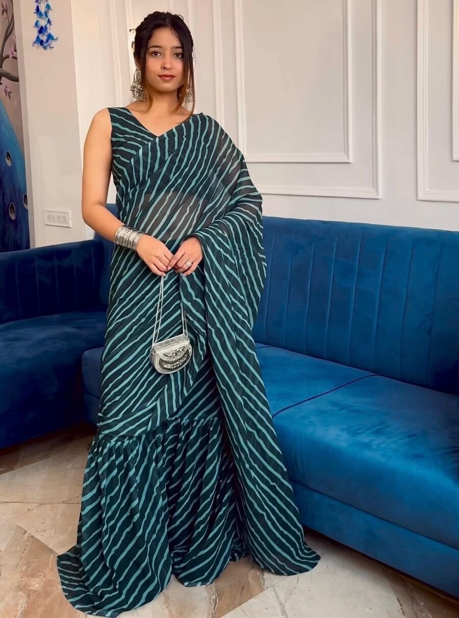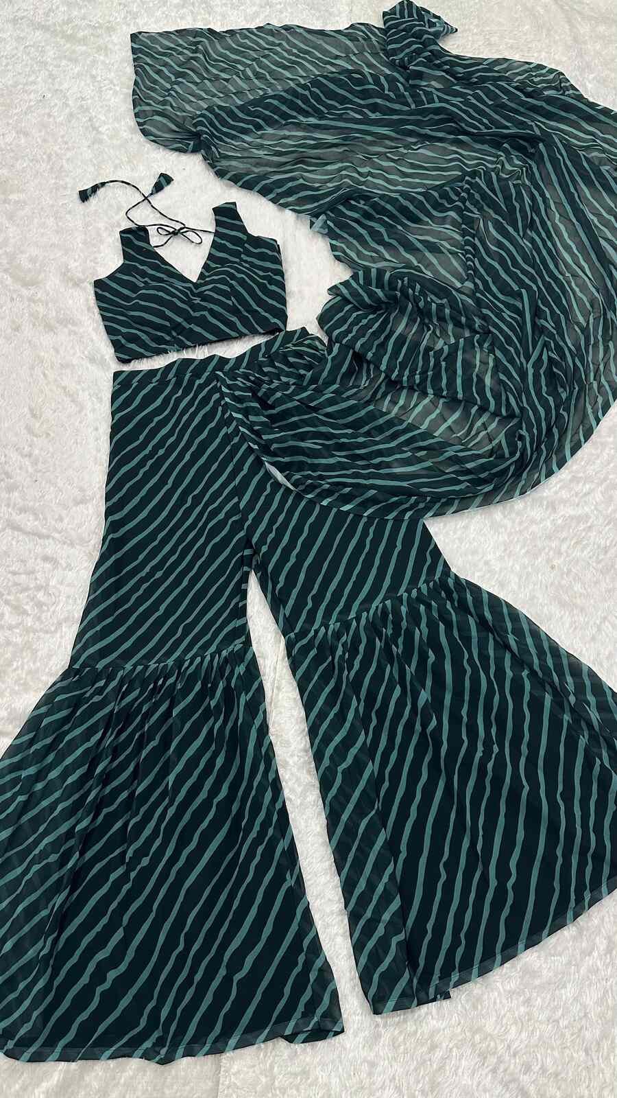 SHARARA :- GEORGETTE DIGITAL PRINTED FLAIRY WITH ELASTIC WAIST & ATTACHED PALLU