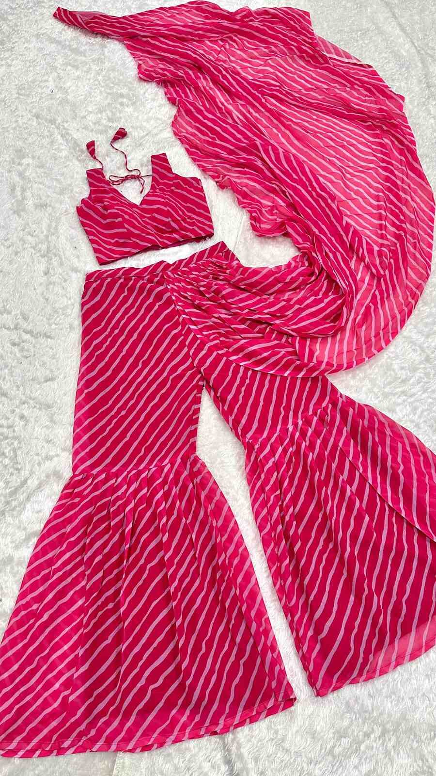 TRENDING GEORGETTE DIGITAL PRINTED SHARARA ATTACHED DUPATTA WITH UNSTITCHED BLOUSE PINK