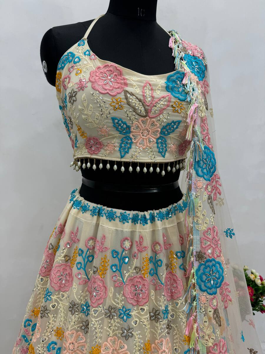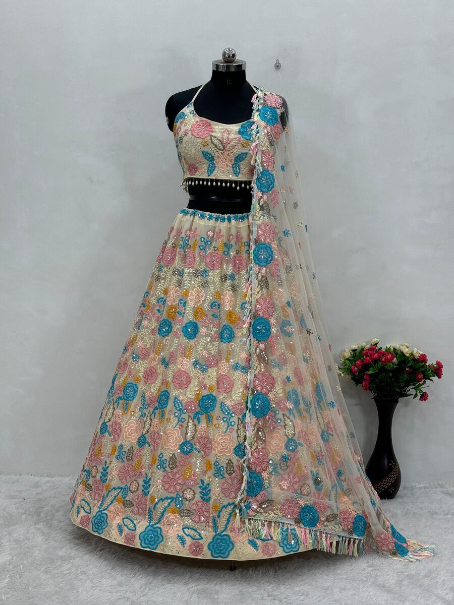 LEHENGA WORK : HEAVY EMBROIDERED SEQUENCE WORK WITH 3 METER FLAIR CAN-VAS, CAN- CAN