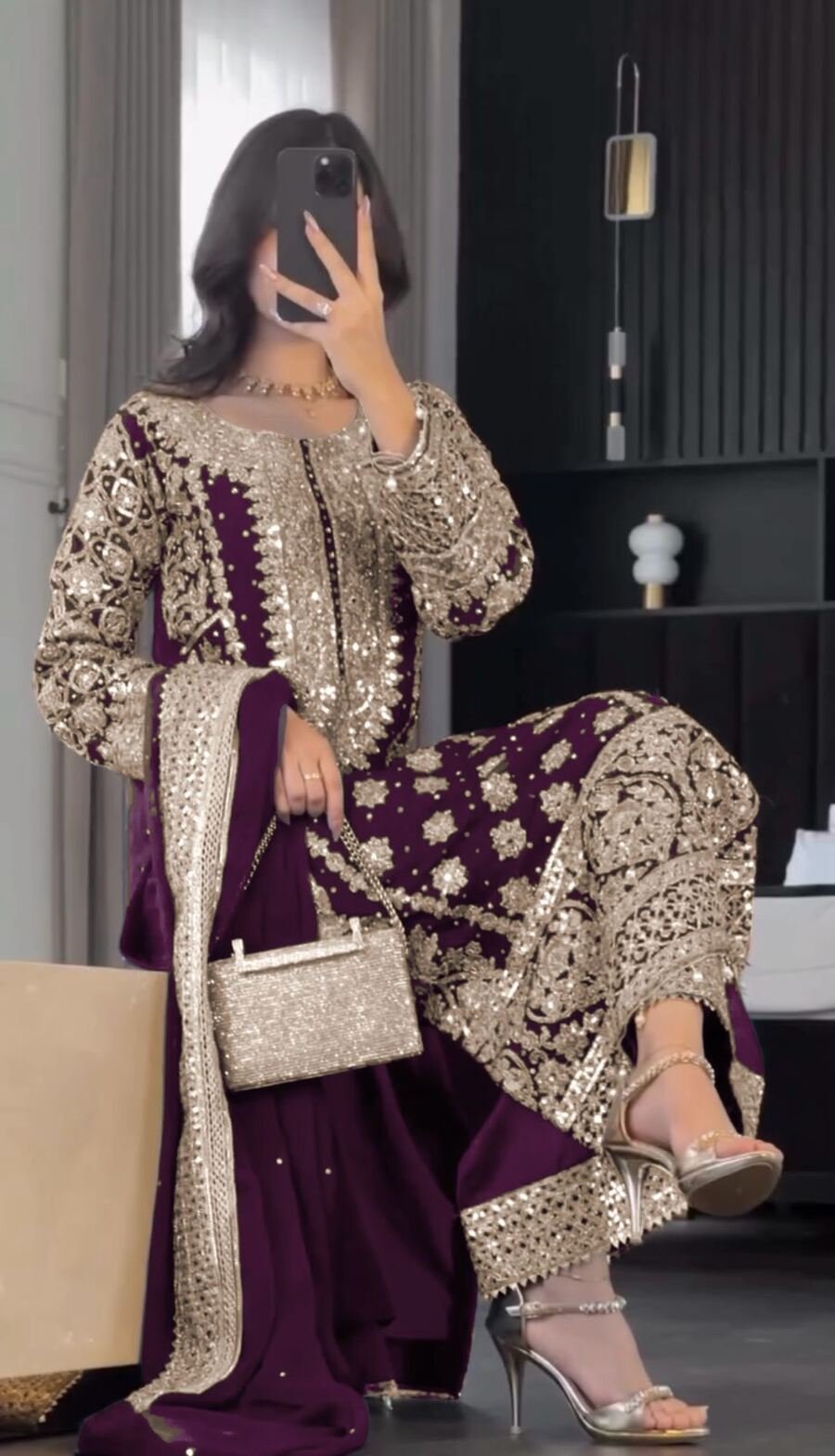 WORK : HEAVY EMBROIDERY SEQUENCE WORK AND FULL SLEEVE WITH REVET MOTI