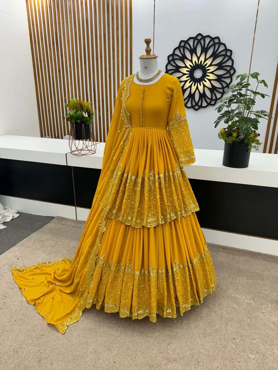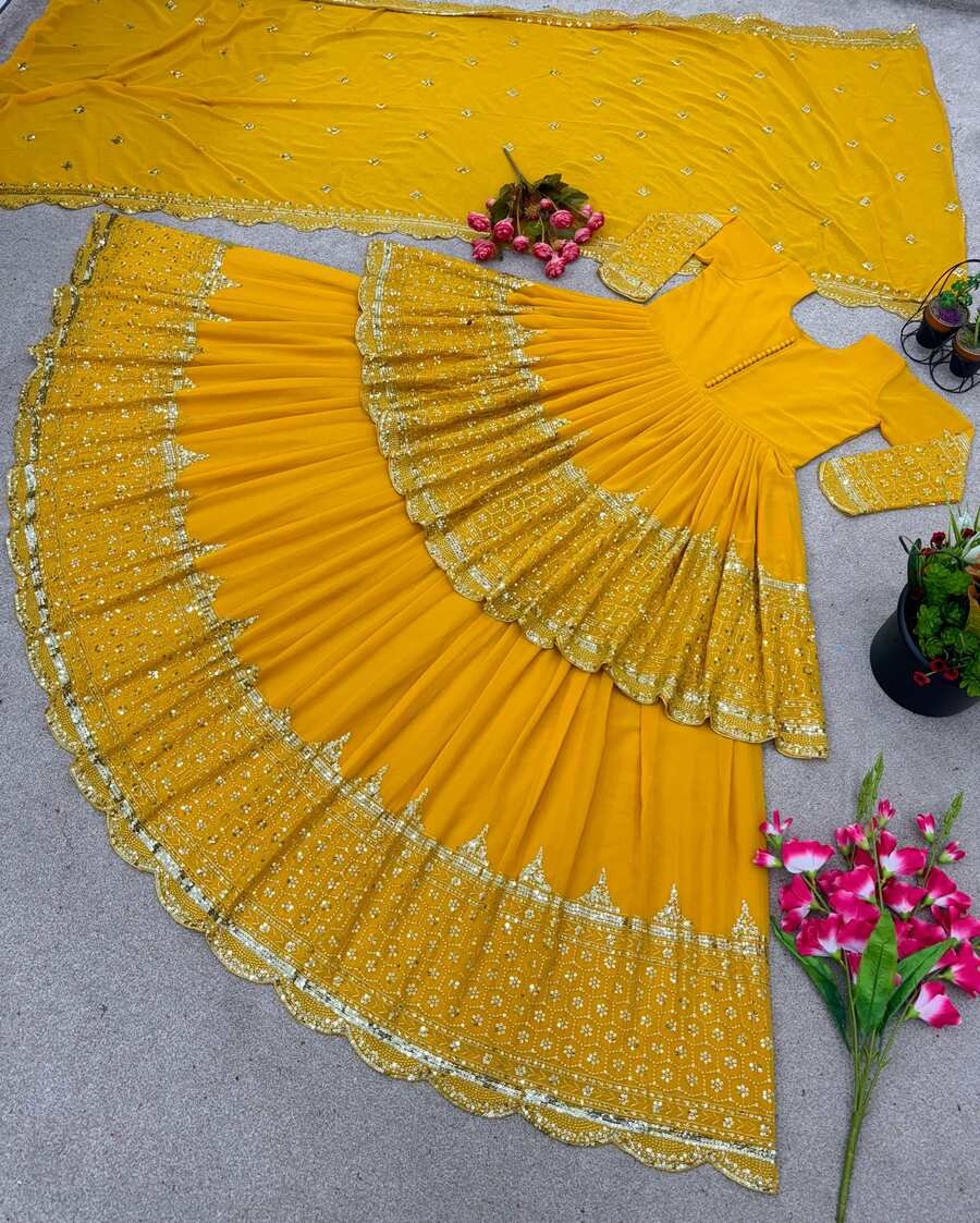 LEHENGA FABRIC :- FAUX GEORGETTE WITH HEAVY 5MM EMBROIDERY SEQUENCE WORK