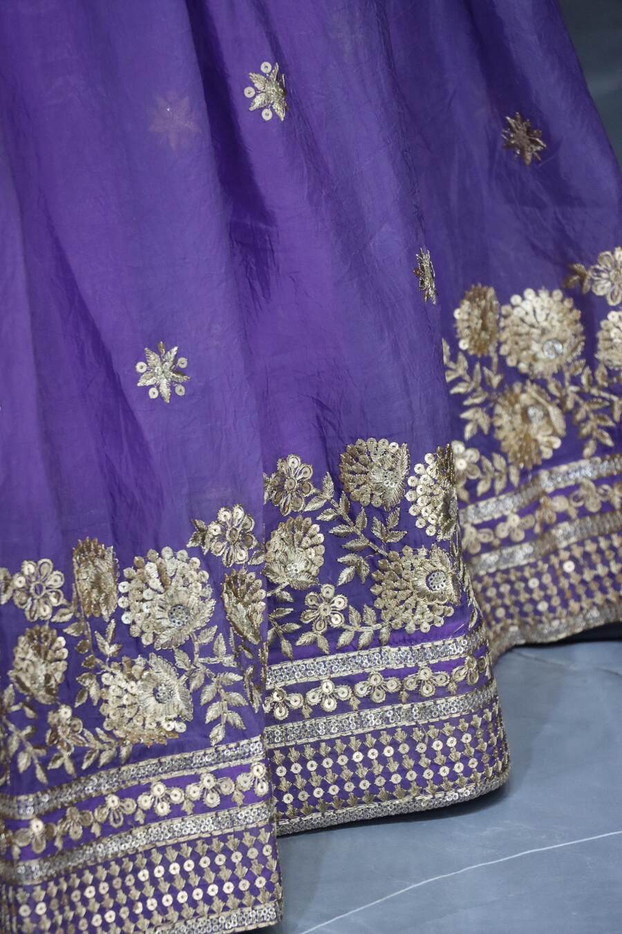 LEHENGA WORK : EMBROIDERY WITH SEQUENCE WORK