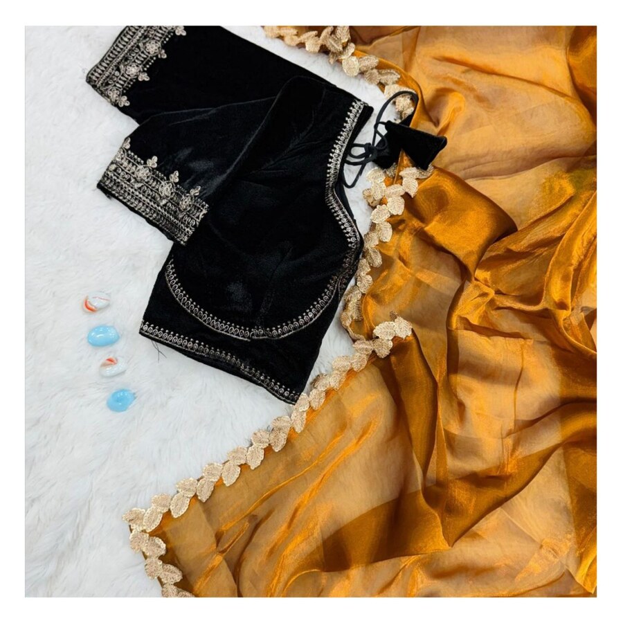 SAREE FABRIC : GOLD SHINING JIMMY CHOO