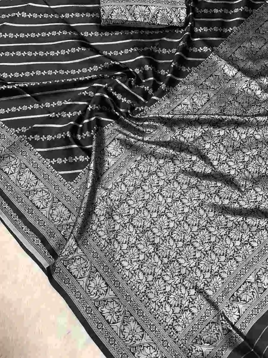 TRENDING LICHI SILK BANARASI WEAVING WORK SAREE WITH UNSTITCHED BLOUSE BLACK