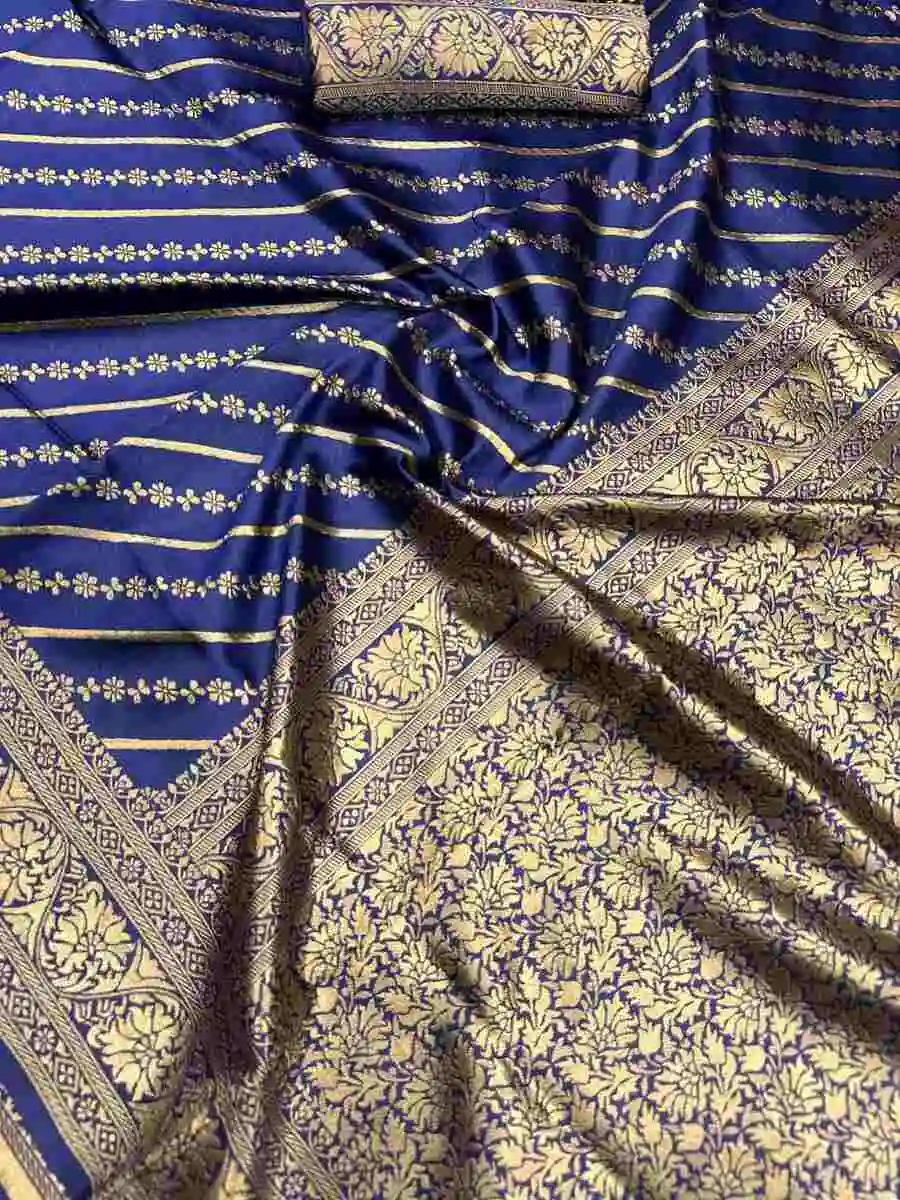 TRENDING LICHI SILK BANARASI WEAVING WORK SAREE WITH UNSTITCHED BLOUSE BLUE
