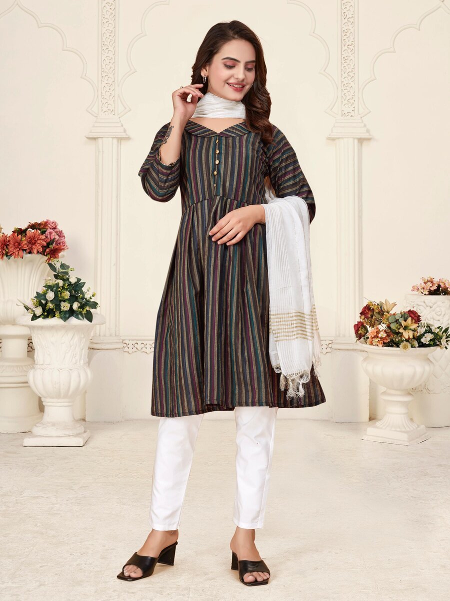 TRENDING LINEN COTTON JACQUARD WORK TOP BOTTOM WITH DUPATTA BLACK