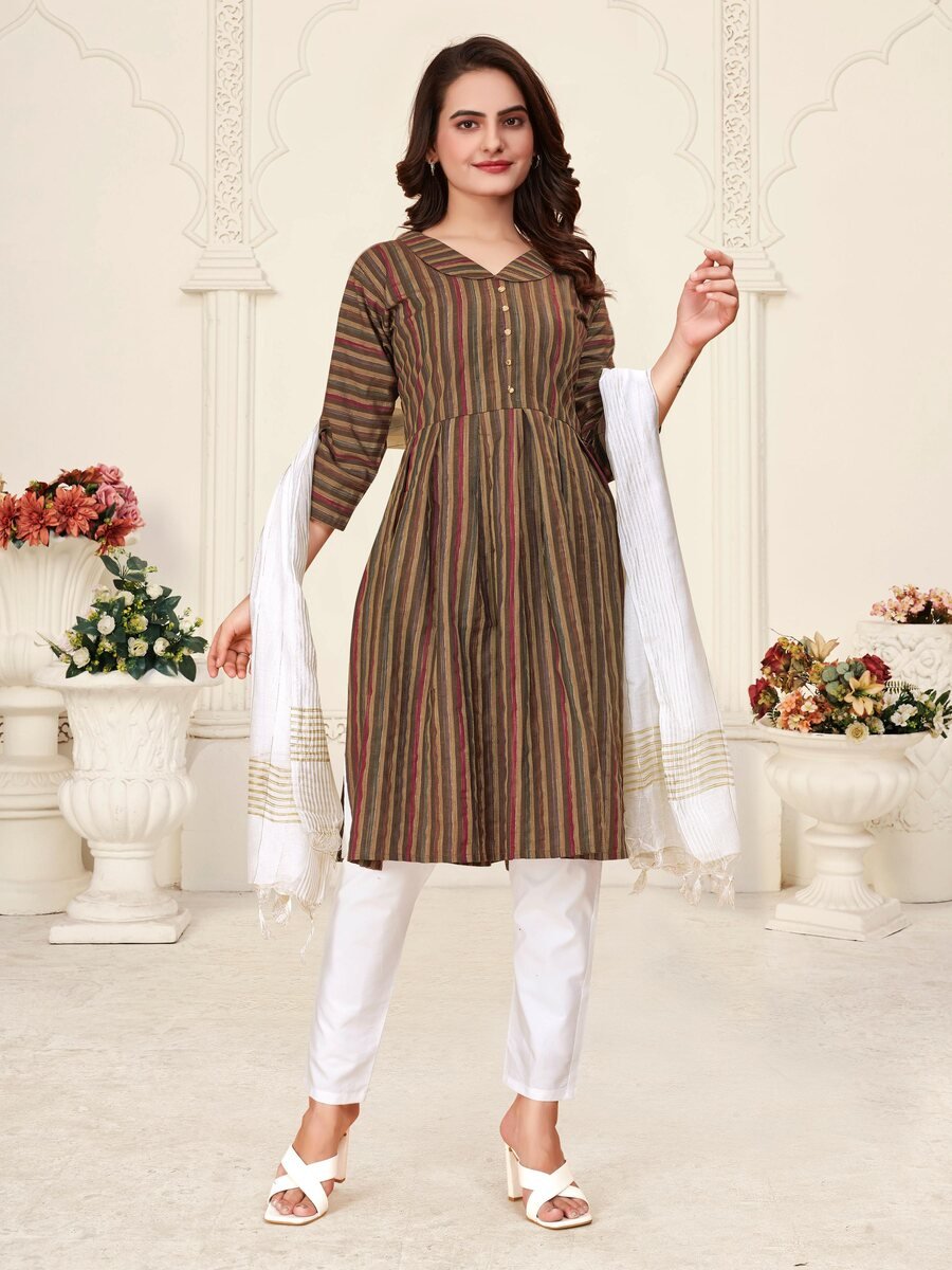TRENDING LINEN COTTON JACQUARD WORK TOP BOTTOM WITH DUPATTA BROWN