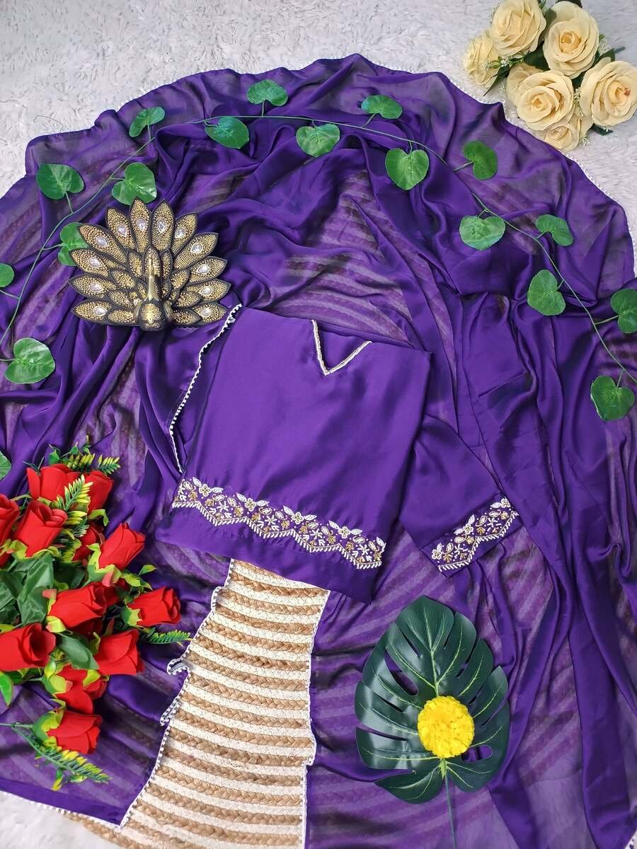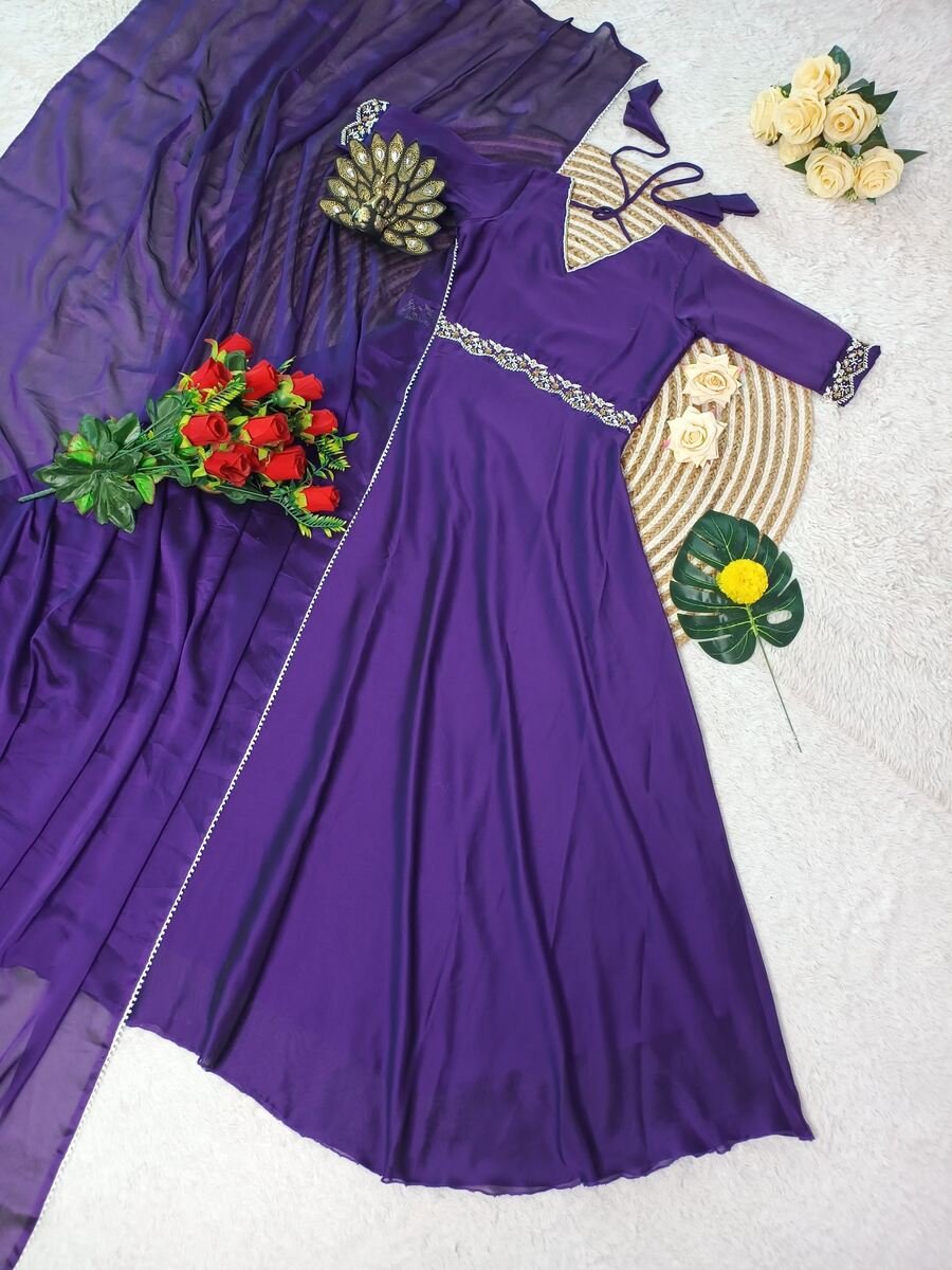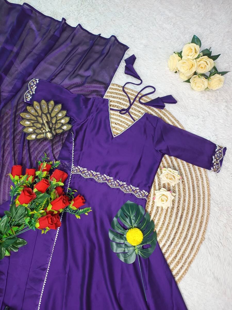 TRENDING RANGOLI SILK HAND MOTI WORK GOWN WITH DUPATTA PURPLE