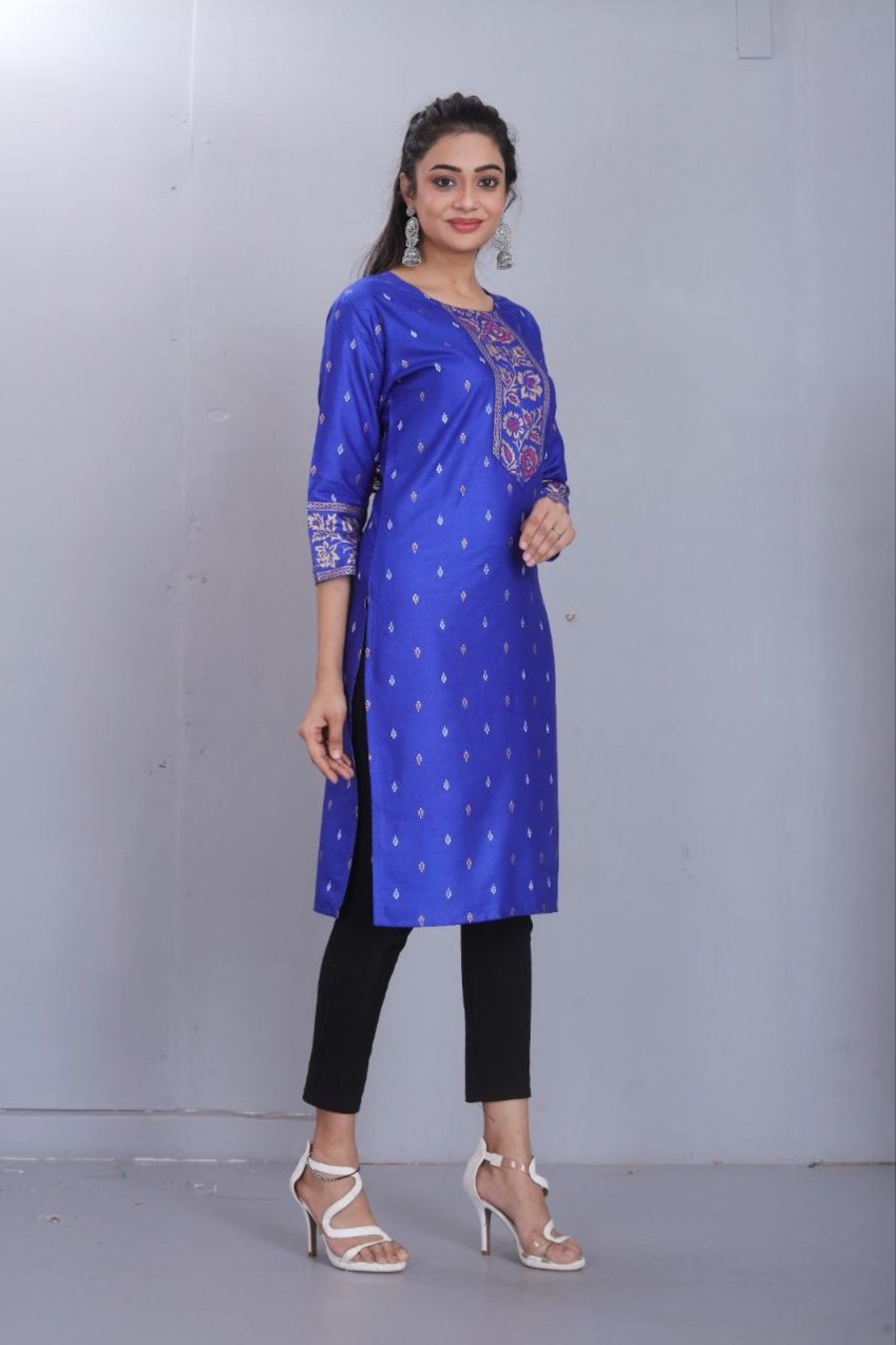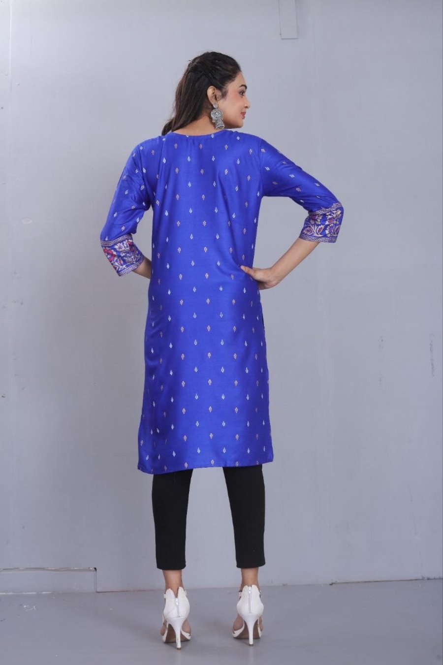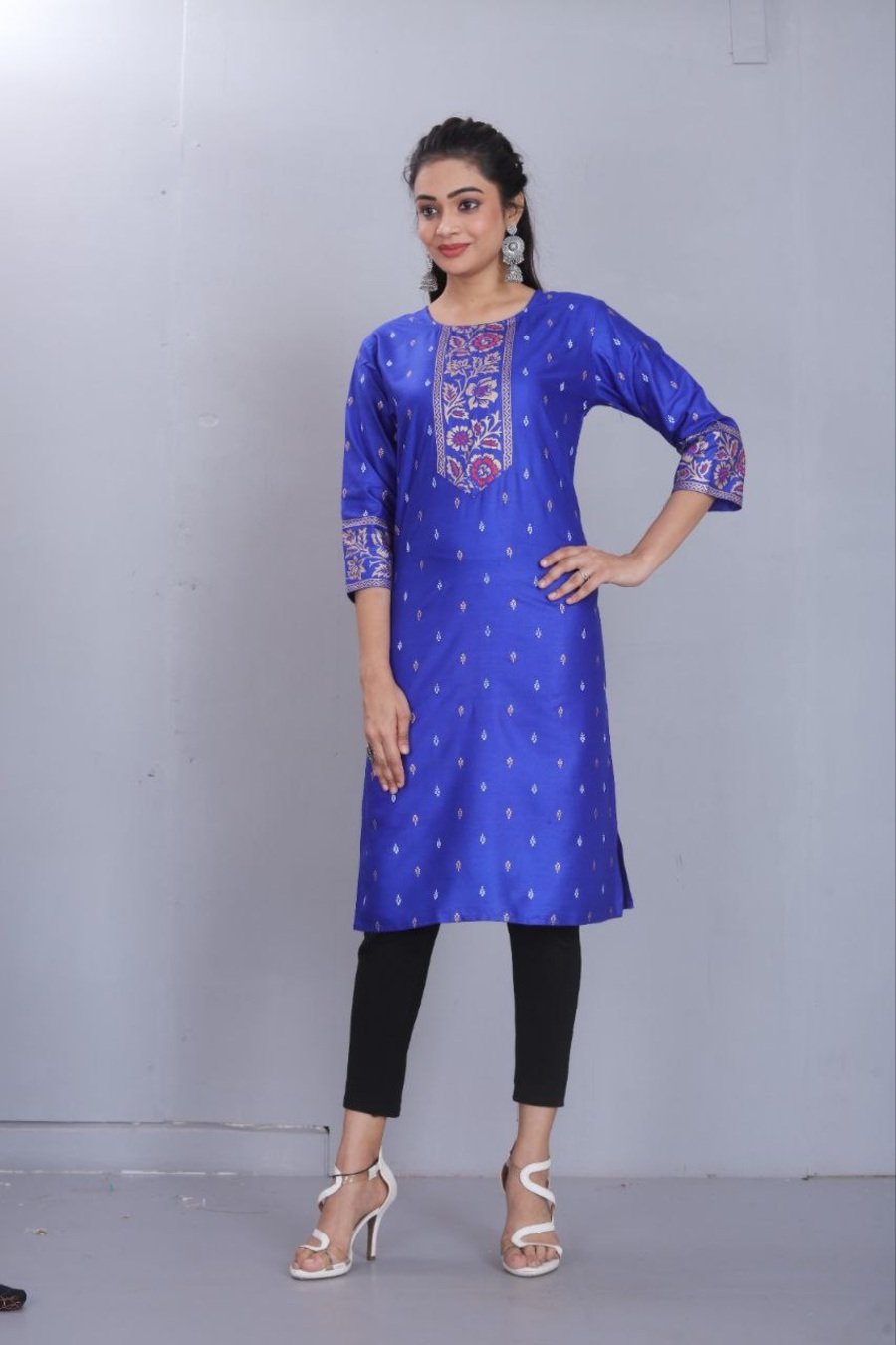 TRENDING RAYON COTTON FOIL PRINTED ONLY KURTI BLUE